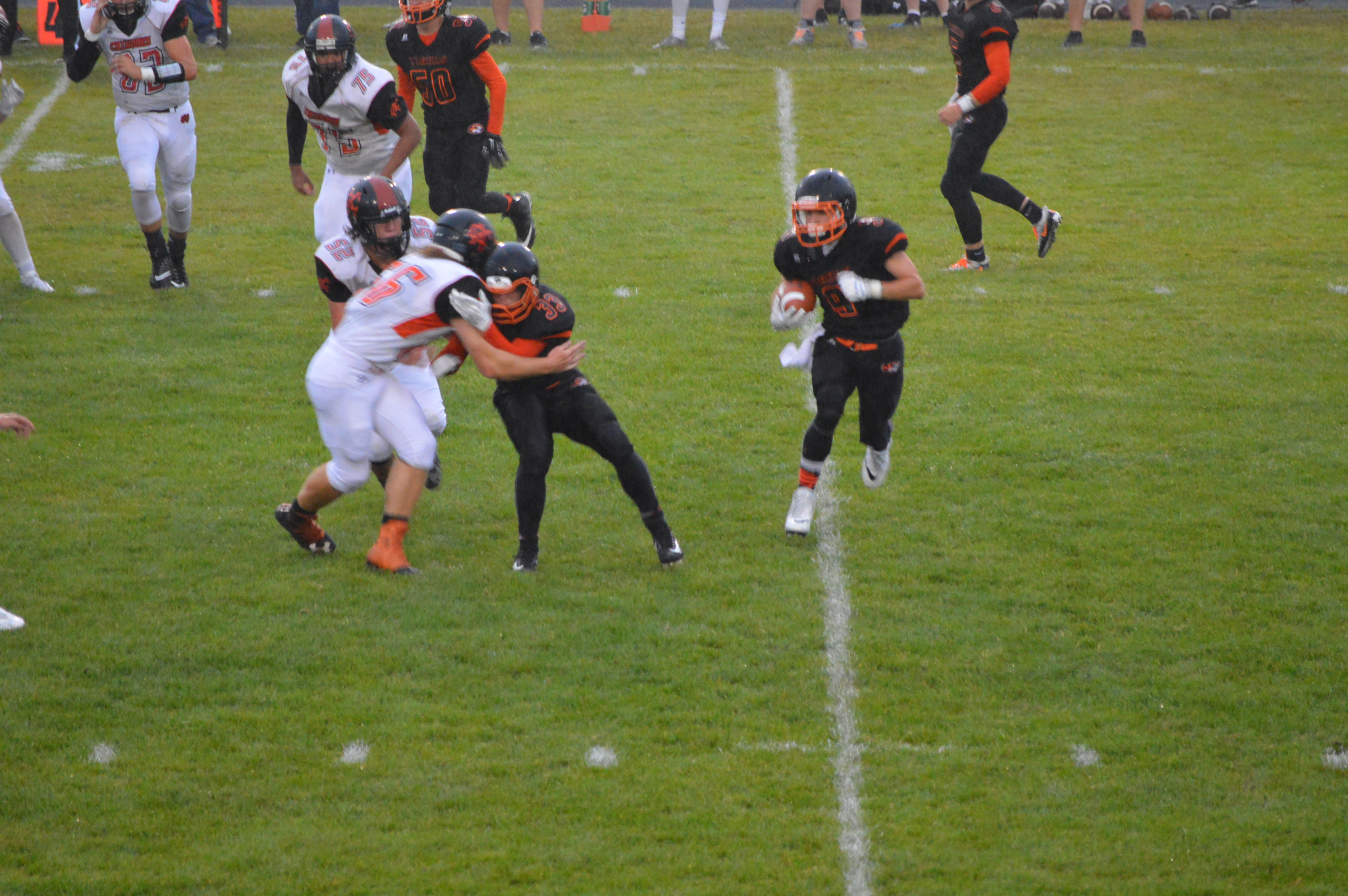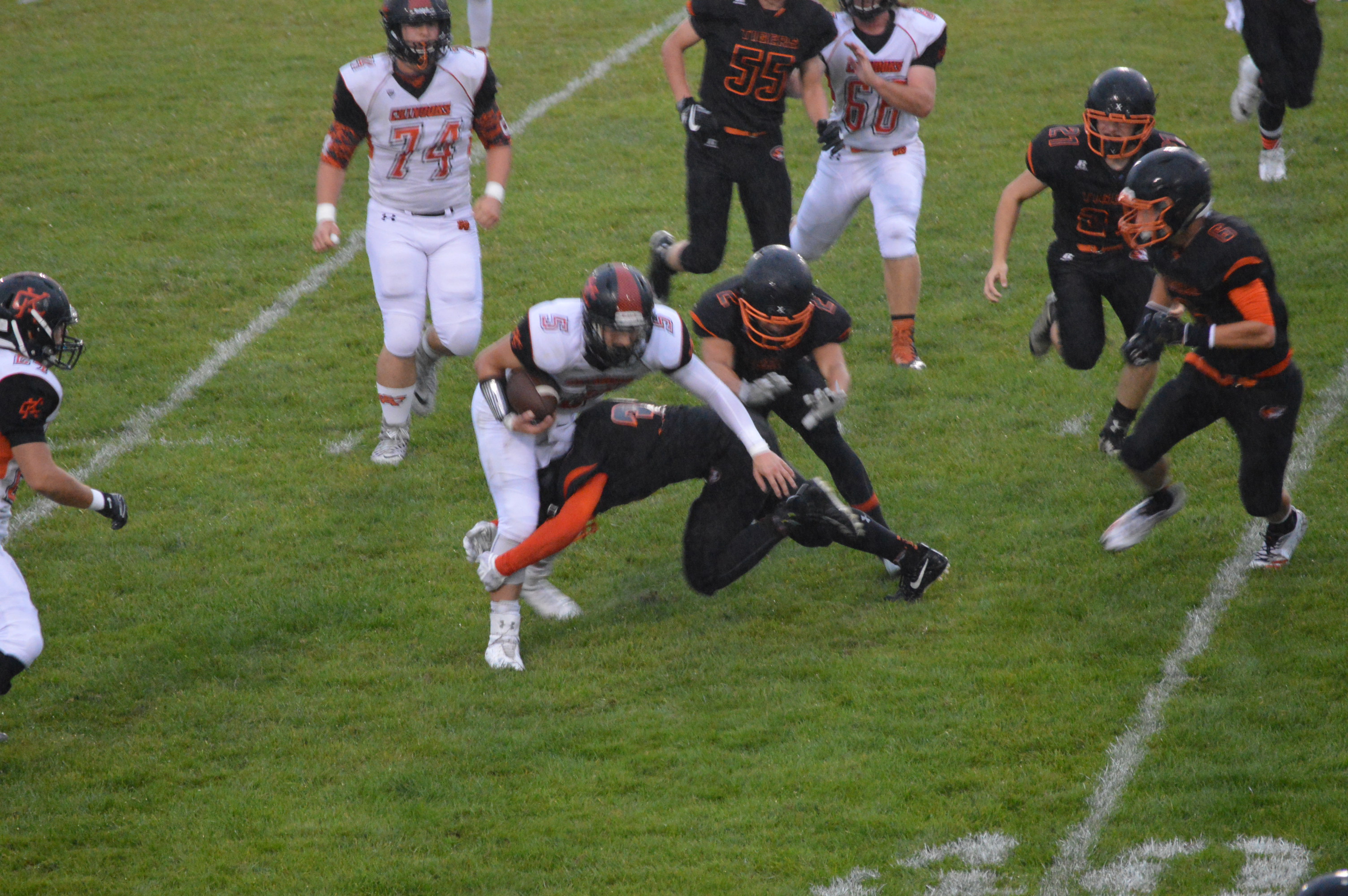 Early in the 2nd half it appeared the Chinooks may have hit a huge play to put the Tigers in deep trouble when Dyer hit Wetmore on a 60-yard TD pass. Wetmore split defenders as Dyer dropped the ball in perfectly avoiding both defenders who were closing fast but the play was called back with a very tight to say the least ineligible man downfield penalty. This would not be the only time this particular penalty would derail Kalama at a critical time later in the 2nd half it would nullify a big first down play. The odd thing about the call was the flag was thrown literally at the line of scrimmage which really questioned just how far downfield the alleged ineligible player really was but none the less the call was made.
