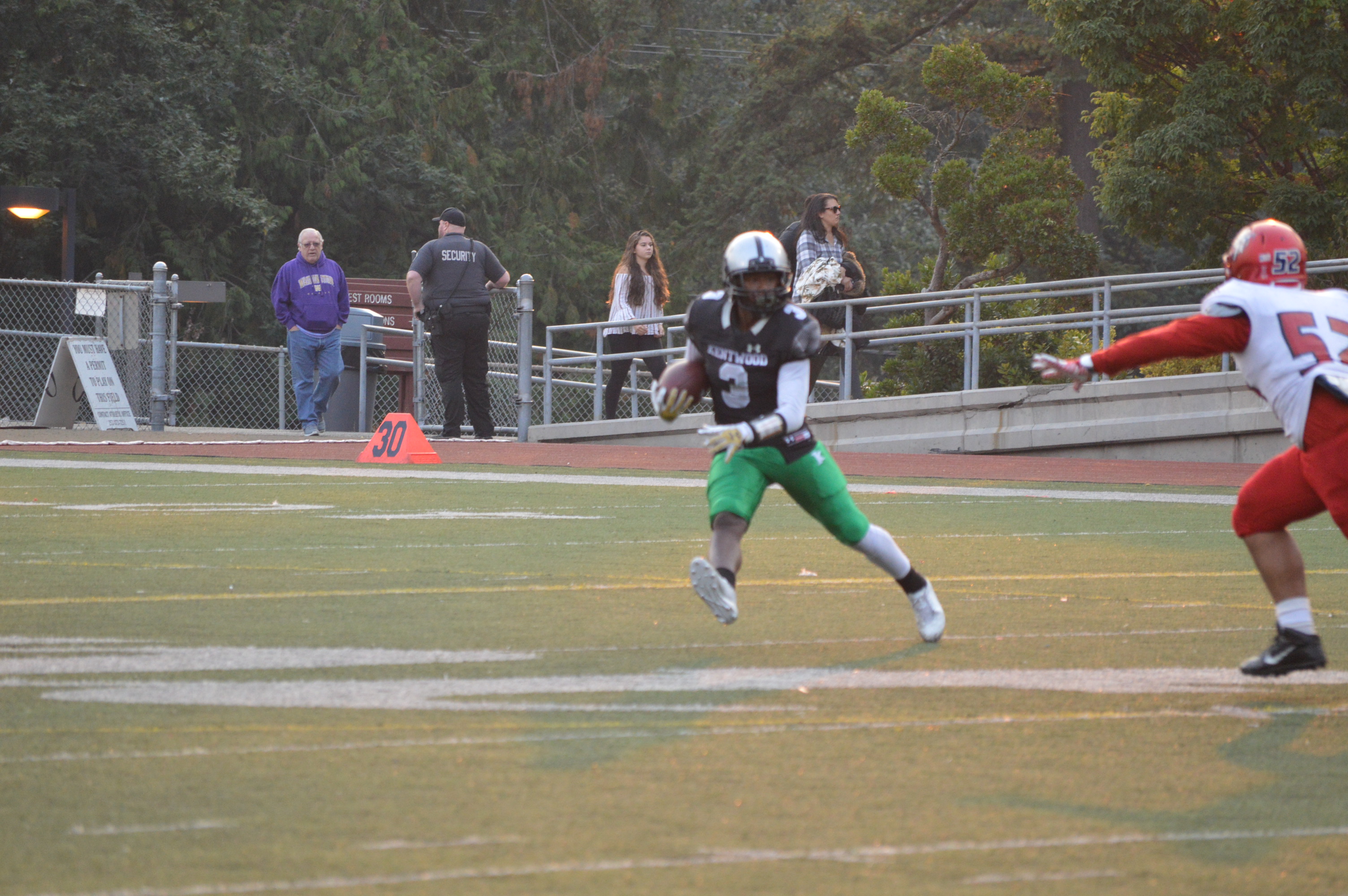 It took discipline for Bush and the Conks to stick with their plan as the Lancers, led by their talented Freshman QB Sam Huard, the son of former UW and Pro QB Damon Huard. It was the KC defense though that set up the 1st TD when Daeshawn picked off about the only mistake of the night from KW QB Justin Seiber and returned it 42 yards to the 8 yard line. The Lancers came out with their jumbo package and saw big #52 Jahvius Levi smash in from the 1 and Kennedy took a 7-0 lead.
