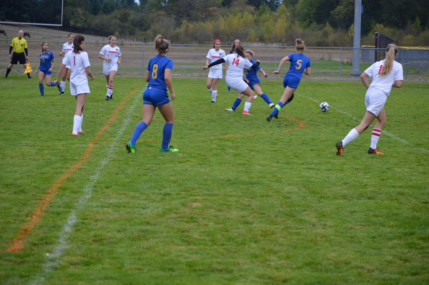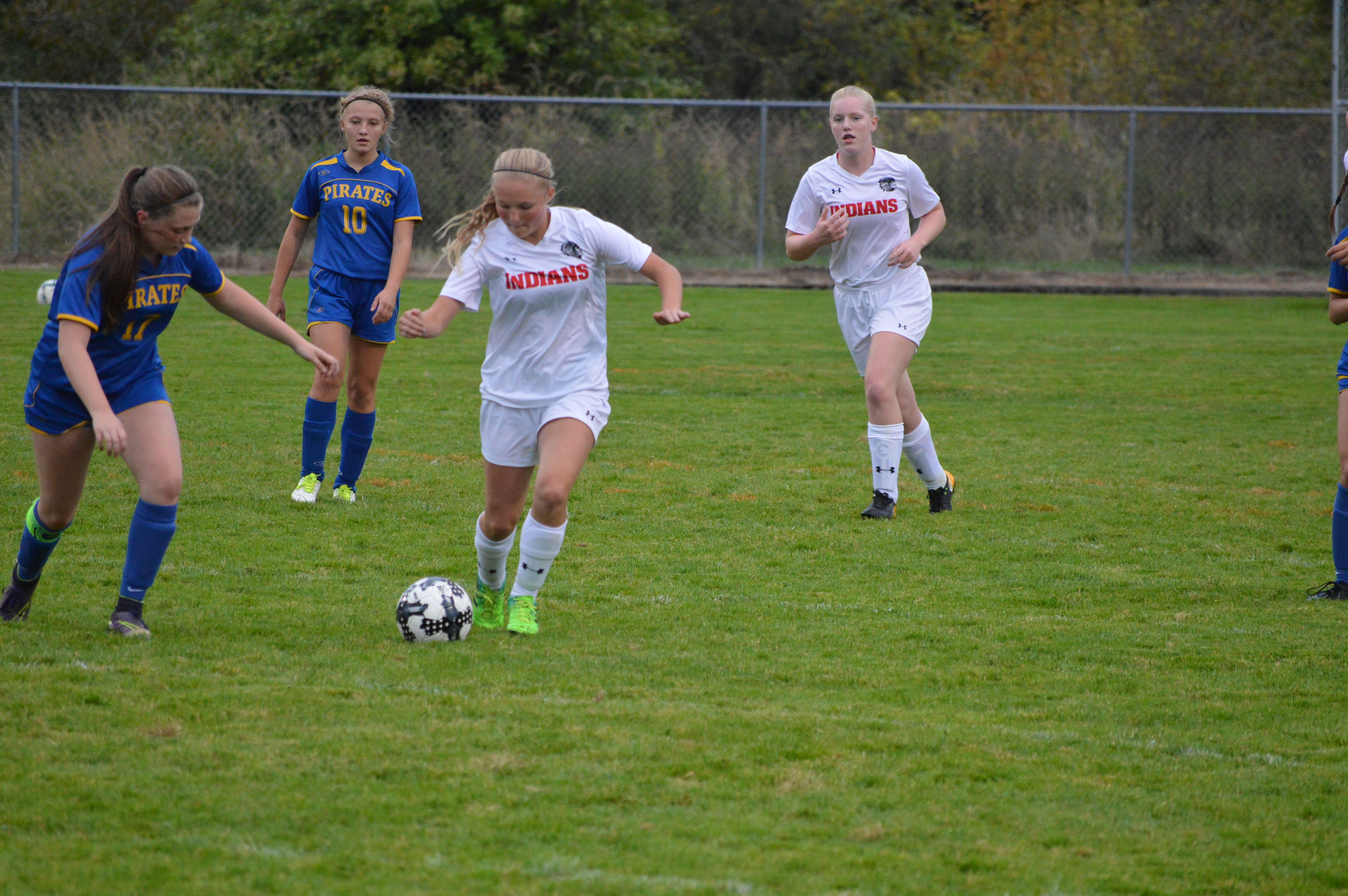 The 2 teams battled back and forth for the 1st half with Adna’s Payton Aselton, Alyssa Dougherty, Brynn Arrington and Emily Silva applying pressure on the Indian defense. But the backline and keeper, Meeghan Peters, Megan Quinn, Emily Tyner, Caitlyn Olson and Alyssa Ewers would not break. The Adna defense was just as effective led by keeper Makaela Meister and the two teams went to the break tied 0-0.