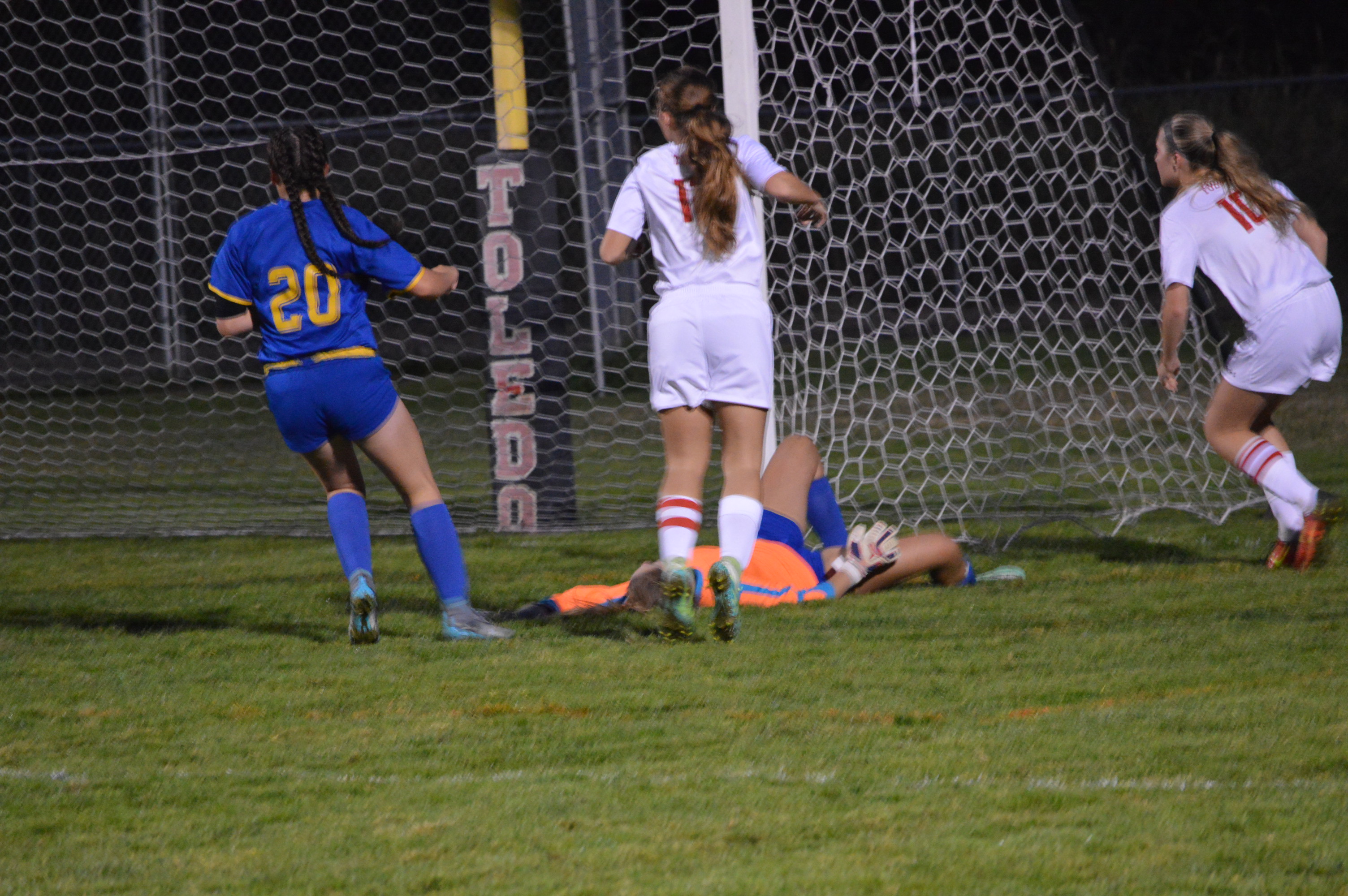 Adna finally got the winning combination with a free kick from about the 25. Aselton booted and it went off one of the wall for Toledo and dropped right in front of Dougherty who did not miss knocking it in for the score in the 75th minute.