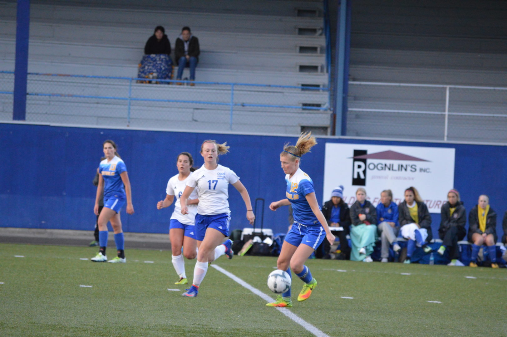 At the 22nd minute mark the Blazers were applying more offensive pressure and it paid off when LeAnn Phanakhone chip a shot up from the right side in front of the goal and Stefani Cifuentes headed it in off the post past Chokers keeper Jenna Dumont.