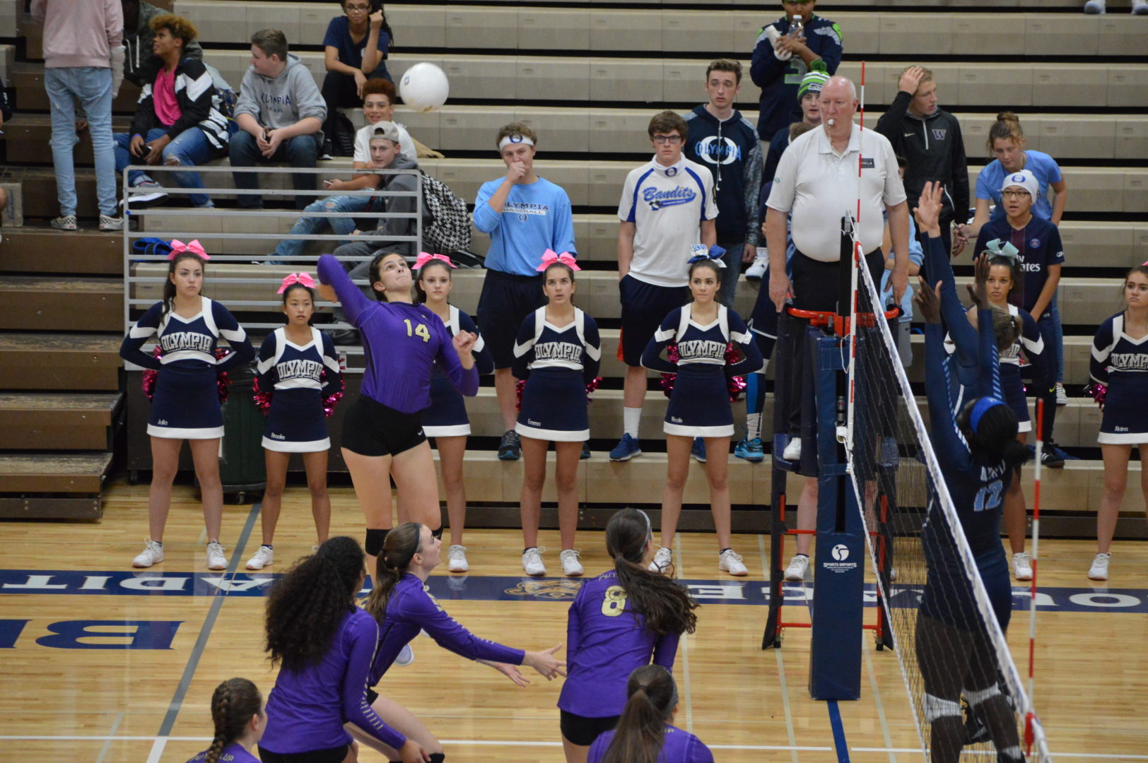 The Vikings and Bears were wrapped up in a tight contest as Olympia took an early lead with Adeline Denslow, Jessica Jewell and Avi Vetter scoring from the service line and Bea Asomaning and Camryn Wilson firing shots from the net. The built an 11-9 lead when Vikings head coach Tony Batinovich called a time-out and challenged his team to step up and play to their level. The challenge was accepted by his squad and you could see a renewed focus.