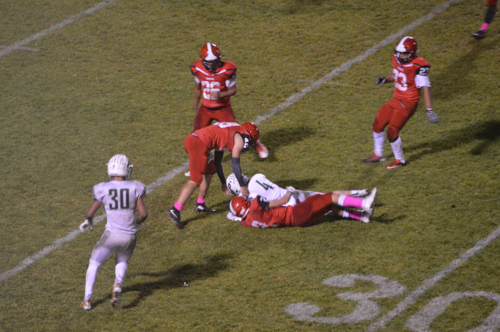 Our Pacific Sports Spa Players of the Game went to Peninsula’s Burke Griffin and Yelm’s middle linebacker Derrick Platt who had another productive game in the middle including a sack and making one of the most incredible tackles we have ever seen, or at least an assist when he pushed his team mate, Austin Osso into the Seahawk’s Cameron McDonald knocking them both down while McDonald tried to turn the corner.