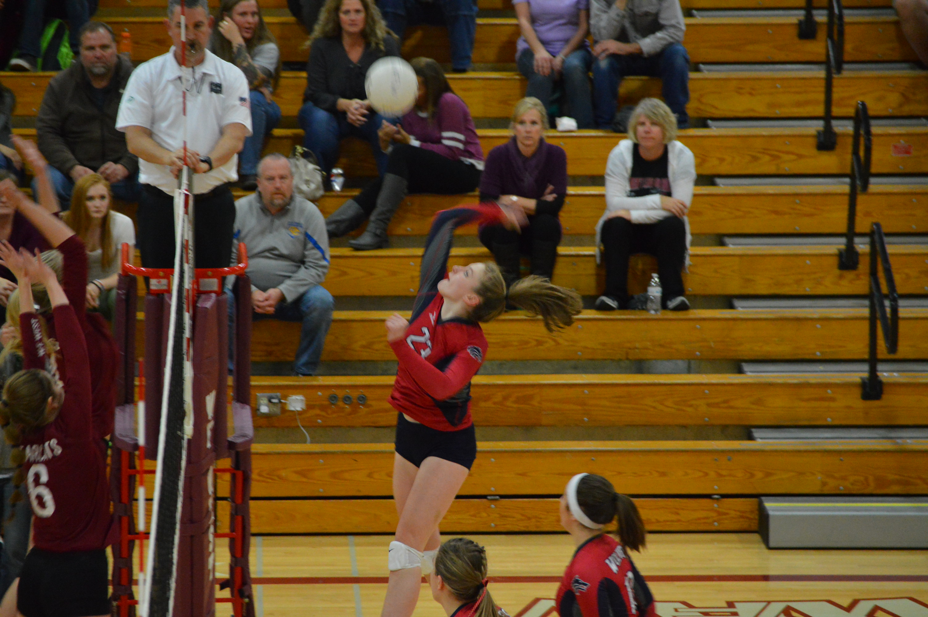 The 1st set saw the two teams battle back and forth with a point lead here and a point lead there until Black Hills’ Emma Goodman stepped up to the serve line and fired off 3 straight points to give the Wolves a 3 point cushion they would never surrender. Hannah Rongen during this run had 3 huge kills to pace the Black Hills net play.