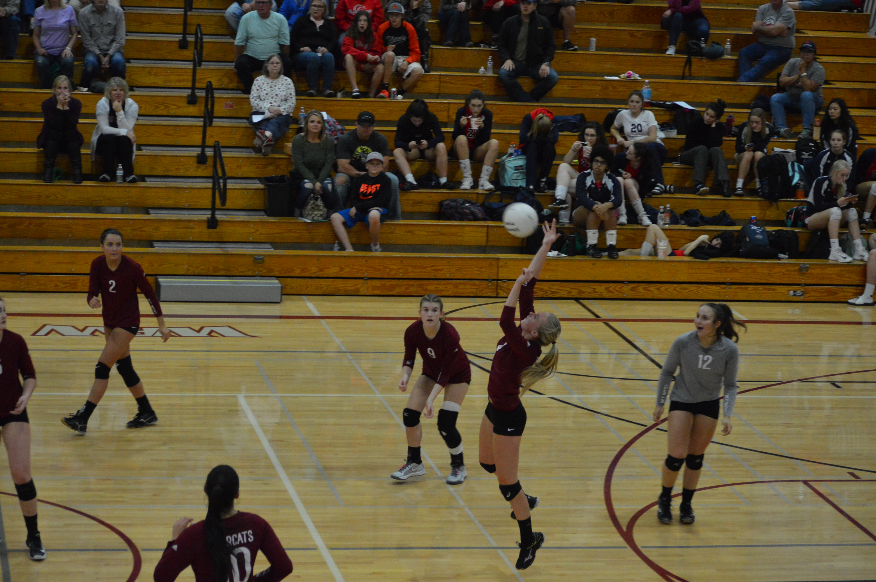 The Wolves decided at this point to kick it back into gear and ran down the Bearcats beginning with a 4 point run at the service line from Goodman to give BH their first lead of the set 17-16. Rongen had 2 big blocks during this run and Maisy Williams fired one between defenders as well. The Cats were hanging tough trailing 19-18 when Brenna Nelson scored 3 points from service featuring another dominating boom kill from Rongen to push it to 22-19 and they closed it out from there with a 25-19 win going up 2-0. When the Wolves were trailing the Bearcats 15-10 they then went on a 15-4 run for the comeback win to go up 2-0.
