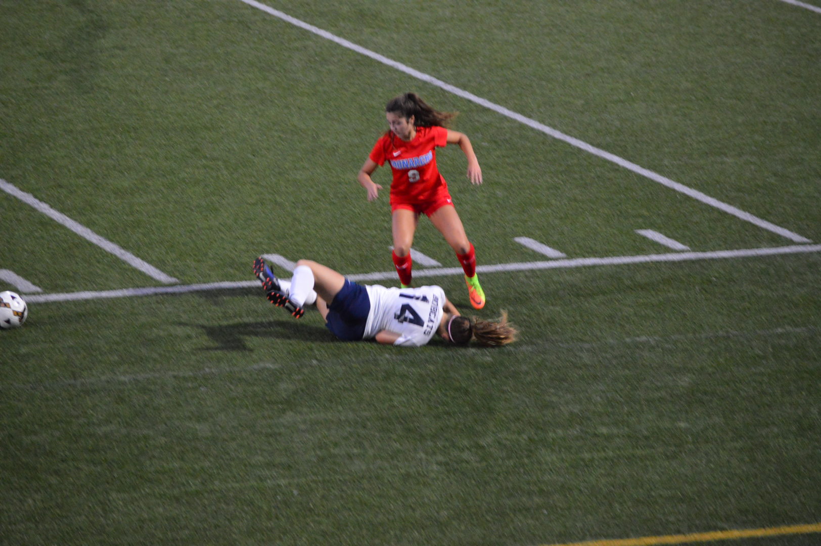 At the half Maxey says they talked about how to break through the lock down defense and came out in the 2nd half trying to go wider and stretch the defense. It took 90-seconds for the new strategy to work when Olivia Bolinger took a Chloe Harris pass from the wing and popped it into the far side of the net for the 1st goal of the game taking the 1-0 lead.