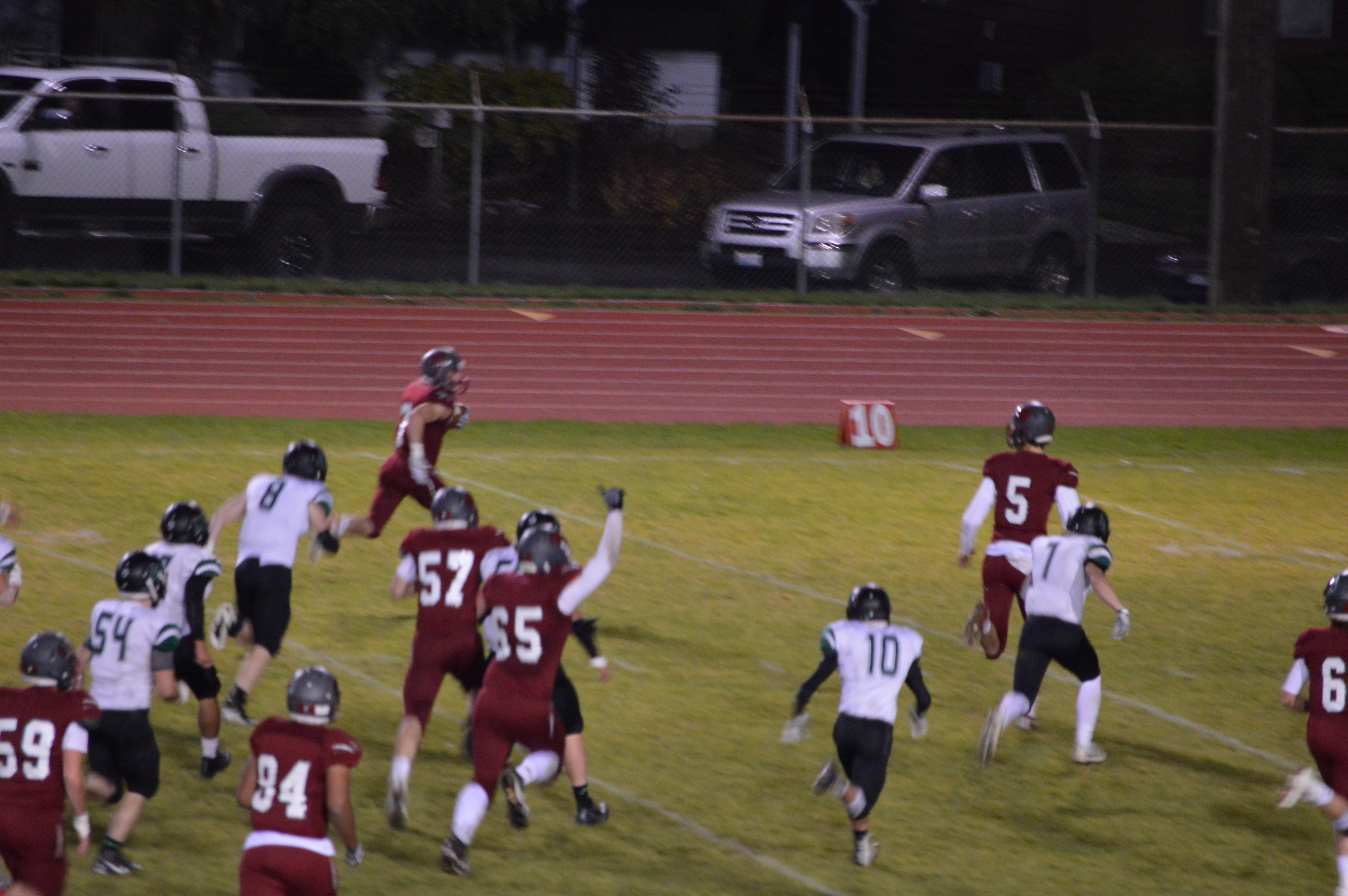 The Bearcats came out with the idea of running the ball and run it they did led by QB Nole Wollan who finished the game with 283 rushing yards on 37 carries. But he would finish off their 1st drive throwing a dart to big Leandre Gaines from the 13. The snap on the PAT was high and it failed but Chehalis led 6-0. The Bearcats would get another interception this time by Tyson Guerrero after the Beaver receiver cut to the post in the endzone and Harsh threw to the corner for the easy pick.