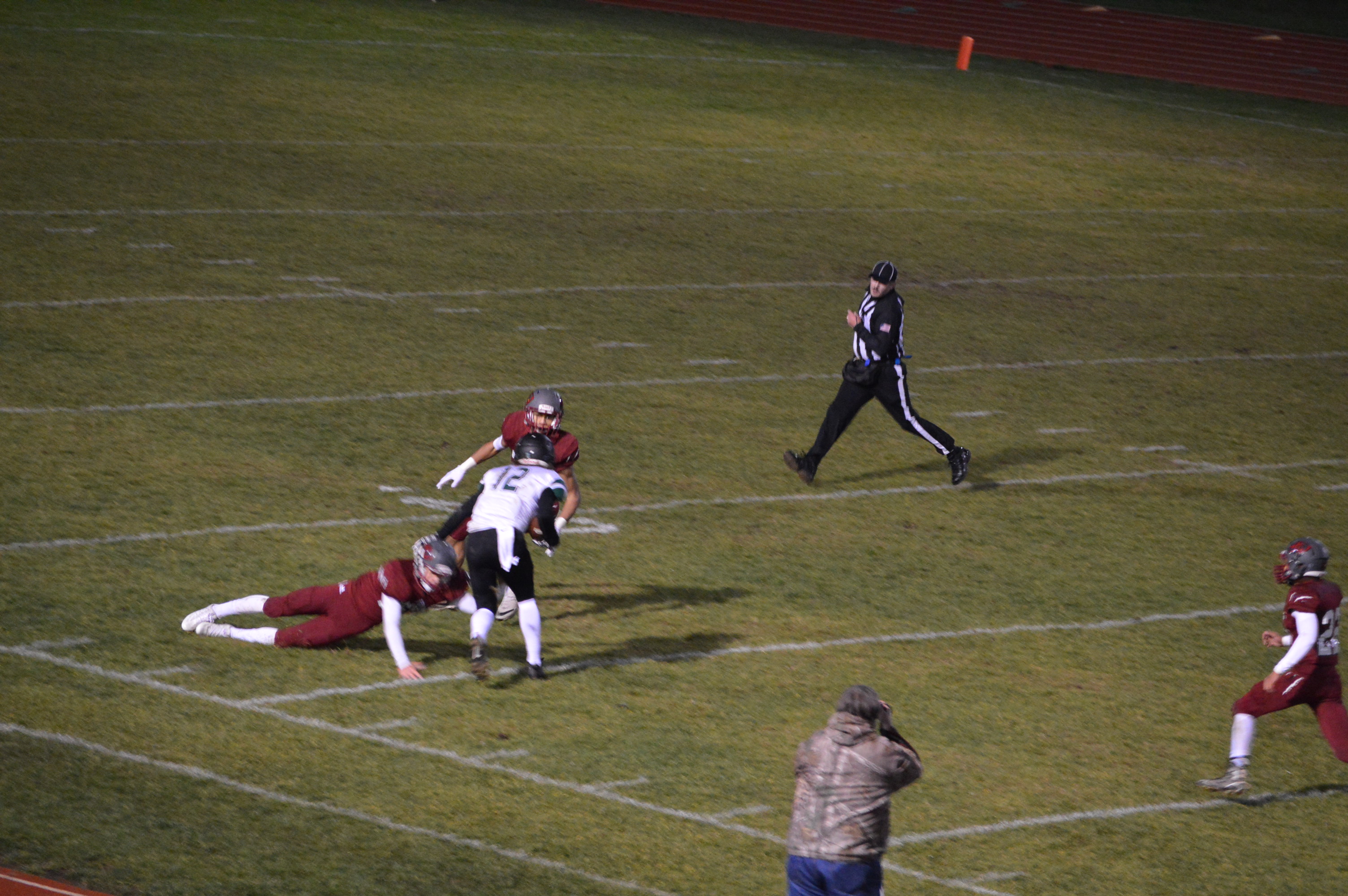 On the next drive Woodland looked like they might roll down the field and punch in the go ahead score with little or no time to play. But the Bearcat defense who just gave up a 43-yard scramble play from Harsh to Wooden to get to the Bearcat 45 then came through with the stand of the game holding the Beavers forcing a 4th and 5 and they elected to punt with 1:07 to play in the game. This was named our ProActive Physical Therapy Play of the Game.