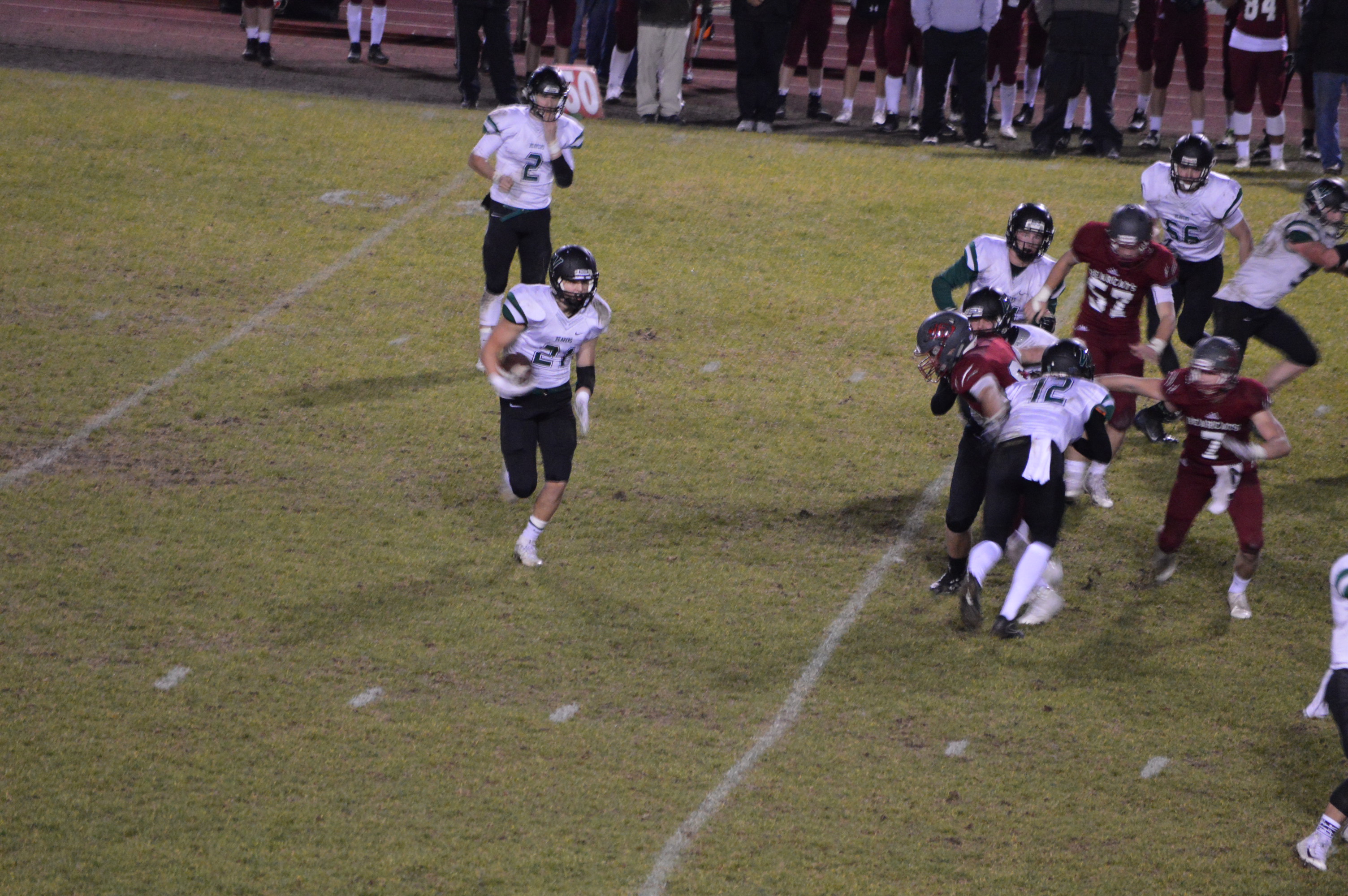 WF West then drove 80 capped off with a Ka’lmi Henry 55-yard dash off right tackle and cut back to the left and was gone. Cory Davis, alias Legatron, booted home the PAT and the Bearcats were up 13-0 with 2:28 to play in the 1st quarter.
