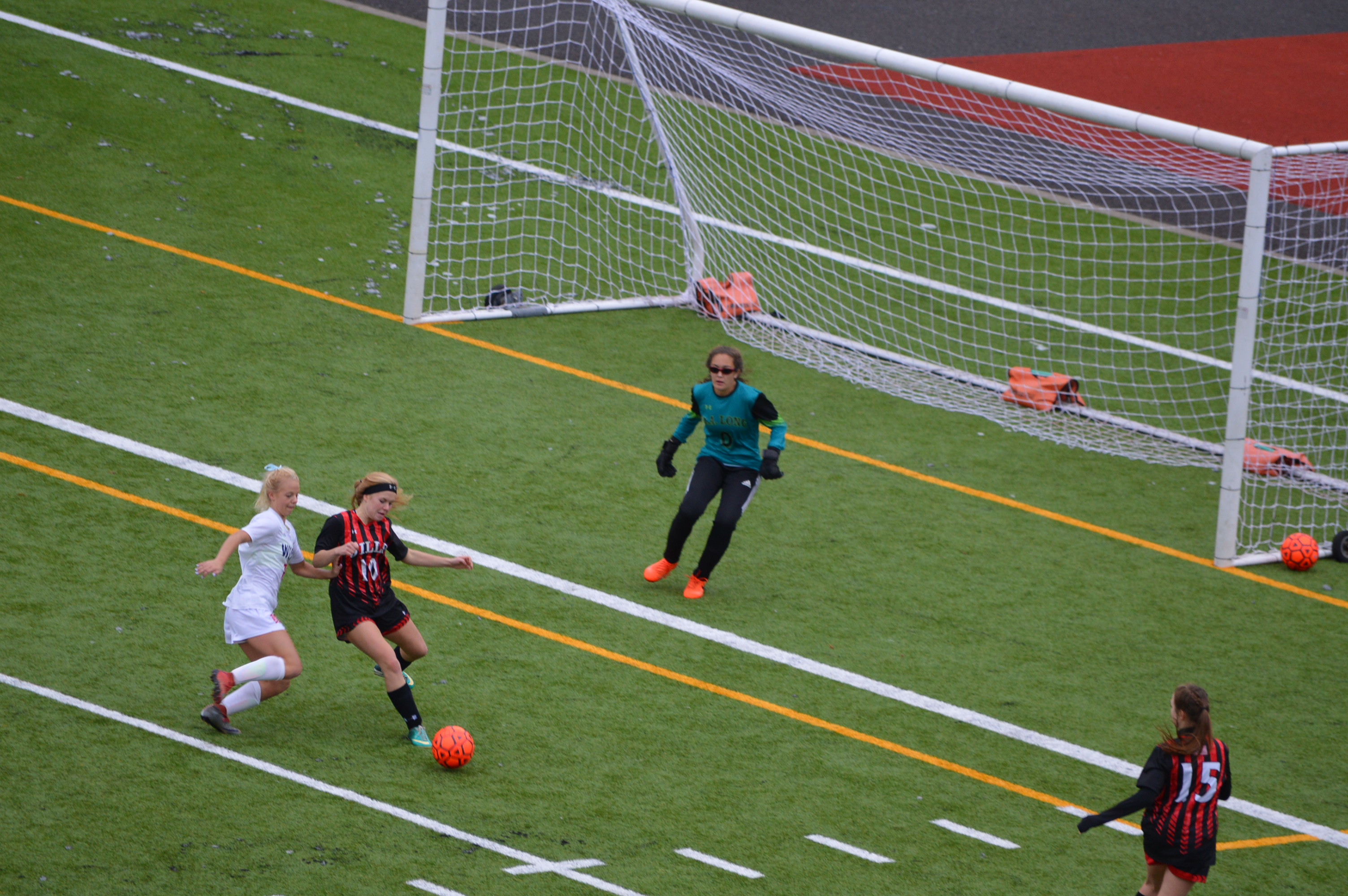 (Tumwater, WA) If she hadn’t already, R.A. Long’s freshman goalkeeper Maddie Barker came of age Saturday afternoon at Tumwater District Stadium, bouncing up from two serious collisions within five minutes, saving key shots down the stretch as the Lumberjills advanced to the 2A state soccer tournament with a 3-1 victory over Black Hills.