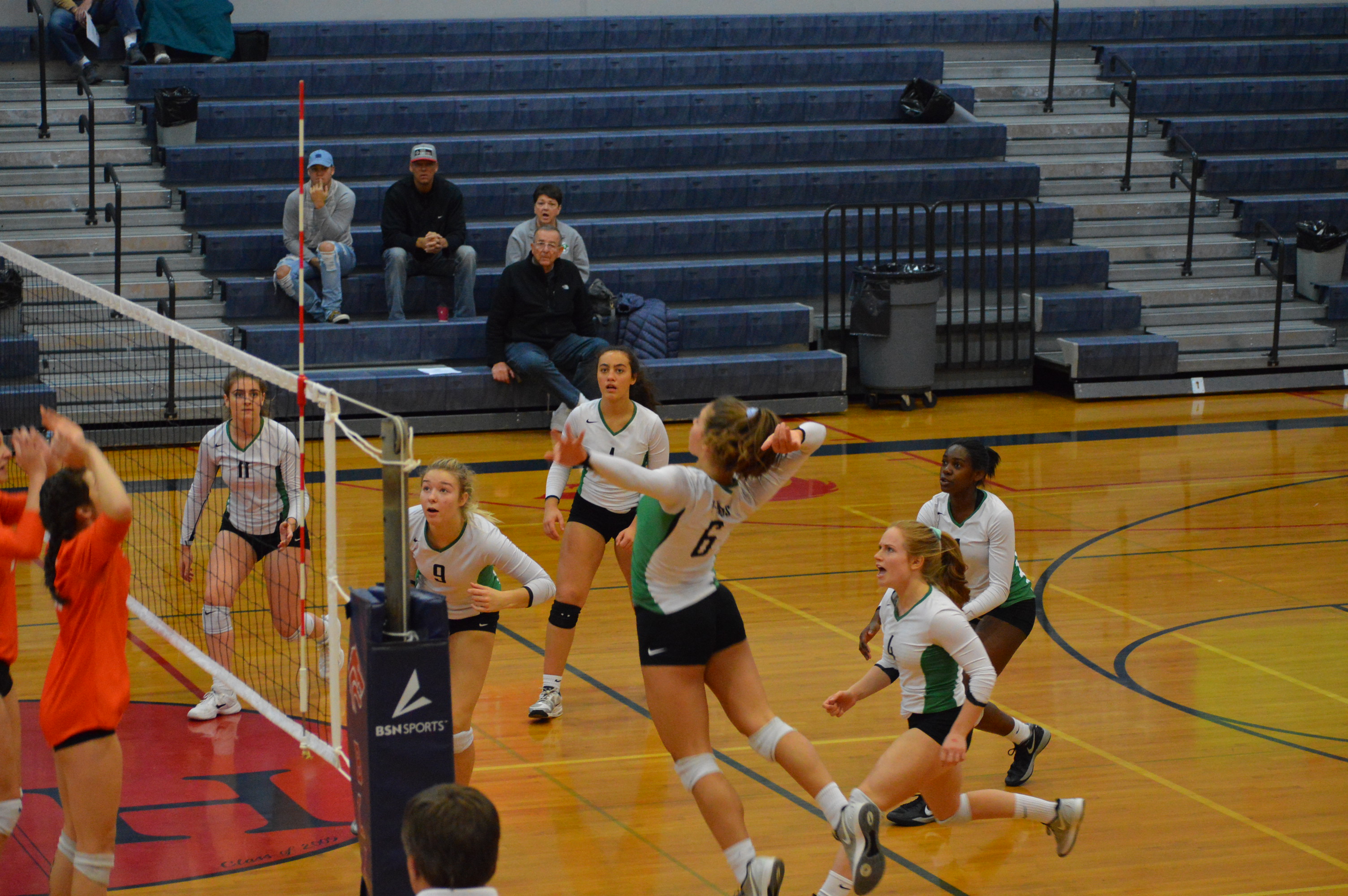 If you thought now that all the State positions were taken and we were down to a match over seeding so the play would fall off well you would be wrong. Although it didn’t look like the Wolves hearts were in it for the 1st 2 sets as Ridgefield cruised 25-18 and 25-15. In that 2nd set the Spudders at one point led 21-9. Anika Nicoll and Delaney Nicoll were huge at the net and sent booming kill shots after another at the Wolves dominating early on.