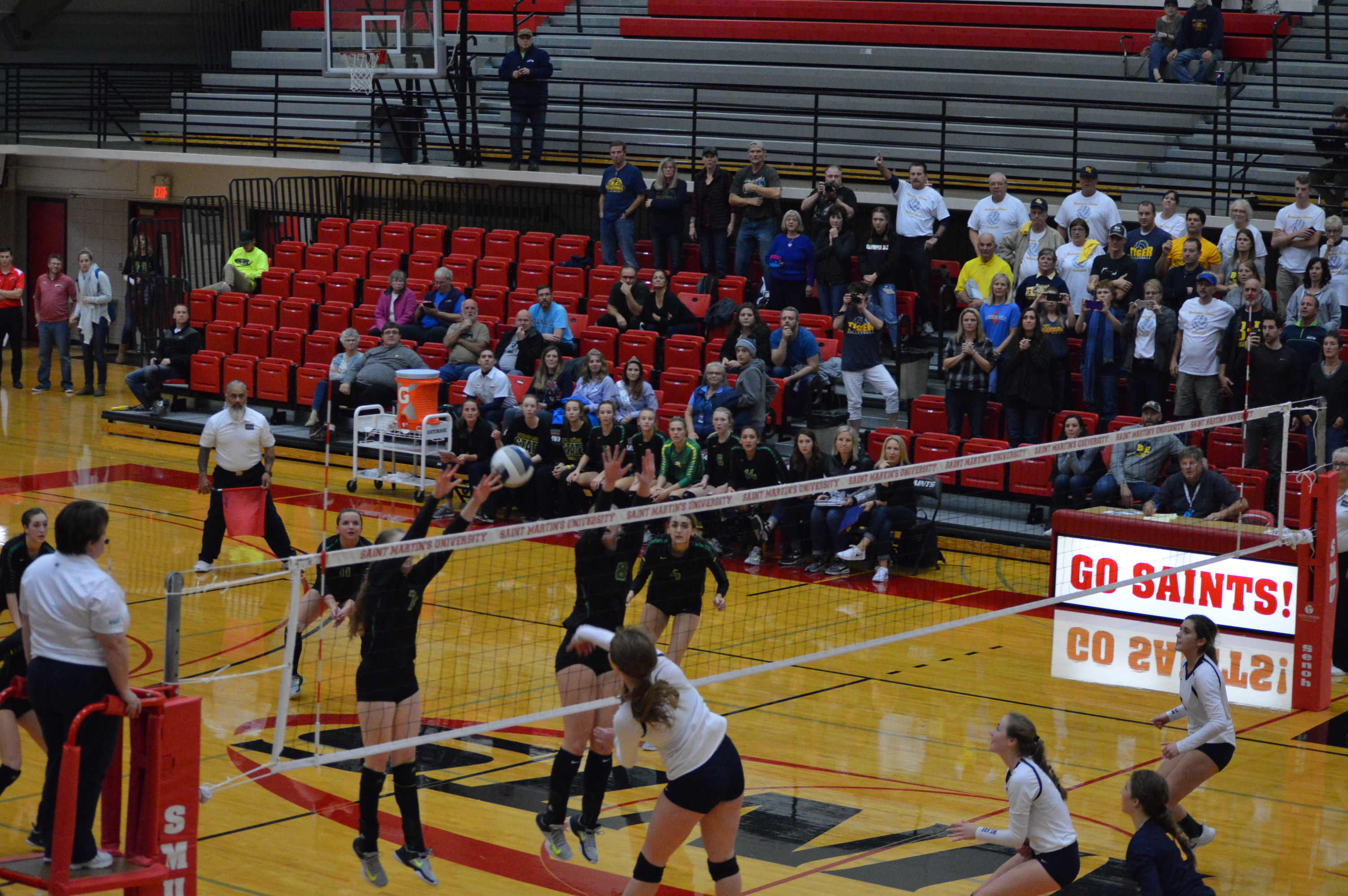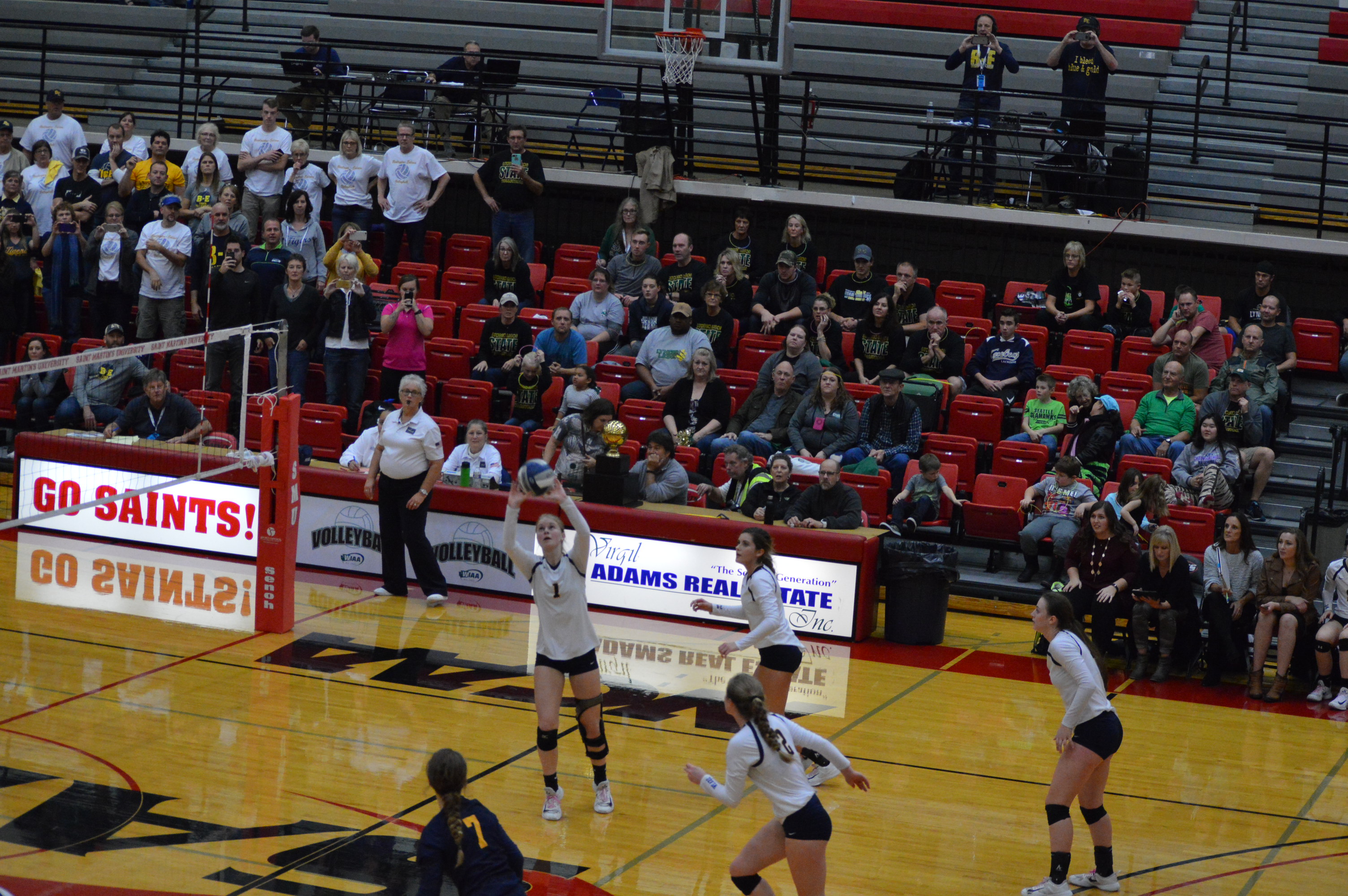 With the consolation match beginning less than an hour after the conclusion of the semi-finals, the District 4 champion Spudders (17-4) benefitted from the extra minutes of rest as well as a determined performance by senior middle blocker Anika Nicoll who pounded down key kill after key kill throughout.