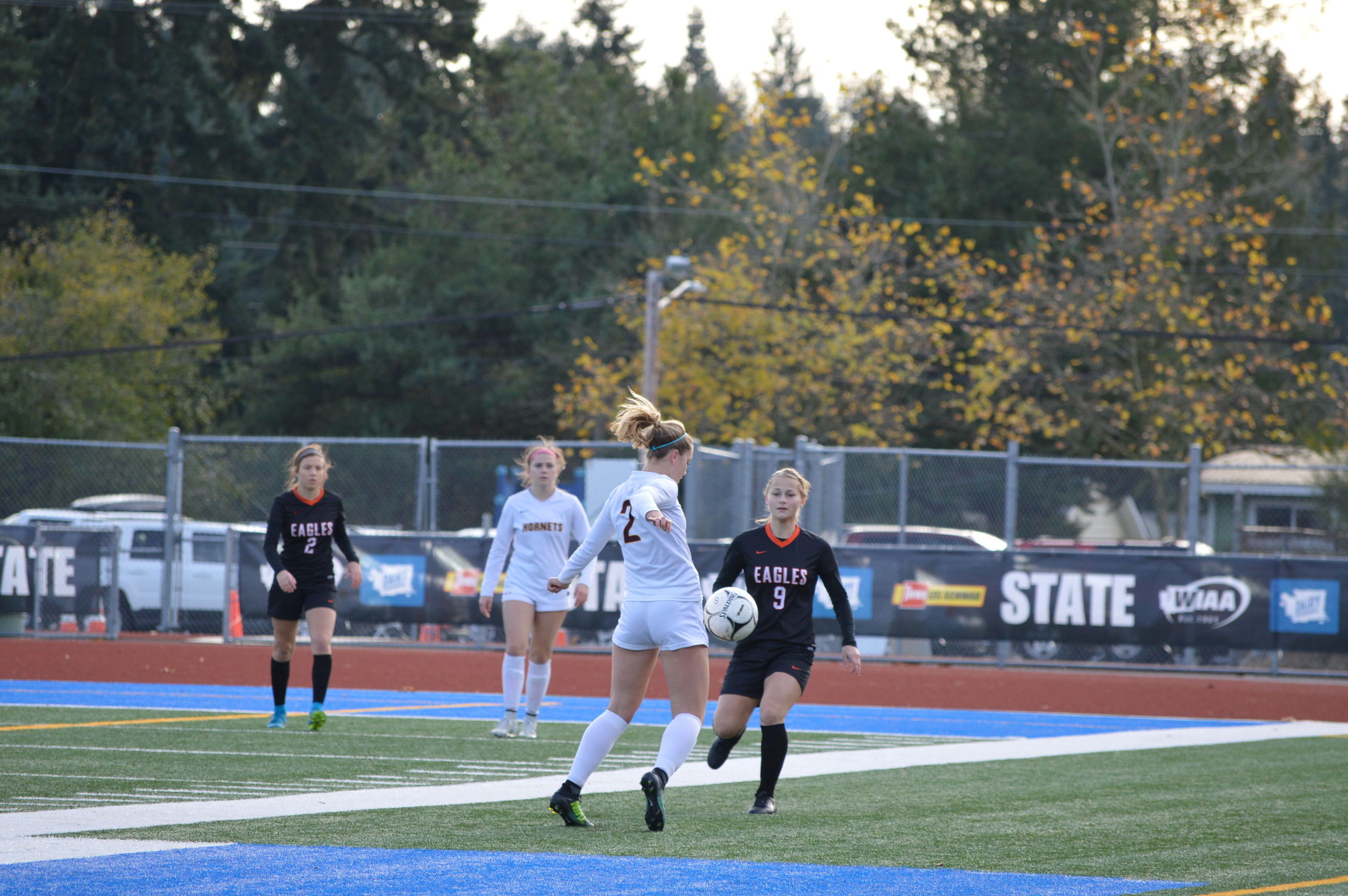 Ten minutes later, though, Adna star Payton Aselton bombed a 33-yard free kick over the head of Eagle goalkeeper Abby Pierson to tie it. Seventy minutes of scoreless soccer ensued, though Life Christian got off 10 shots to Adna’s two during regular and ten minutes of overtime.