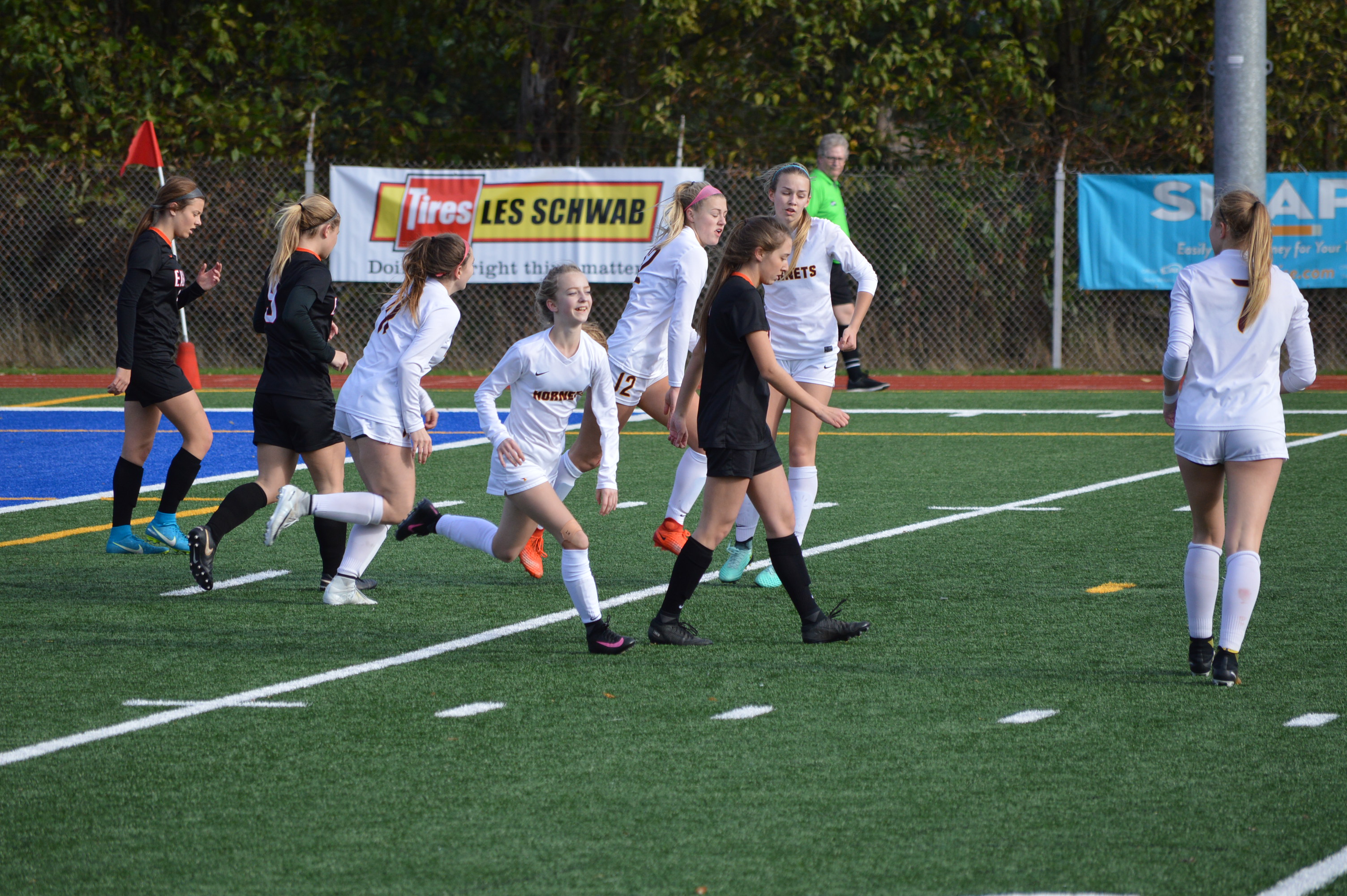 At halftime it was clear Hornets Coach Joe Birklid challenged his squad asking them is this the way they want to end their season and the answer clearly was an emphatic no. The Hornets came out firing led by senior Annabelle Hall and Haley Gunter. Gunter got things started knocking in a corner kick on the fly to pull within 1 in the 47th minute. Hall then found the equalizer in the 61st with a break-away unassisted score.