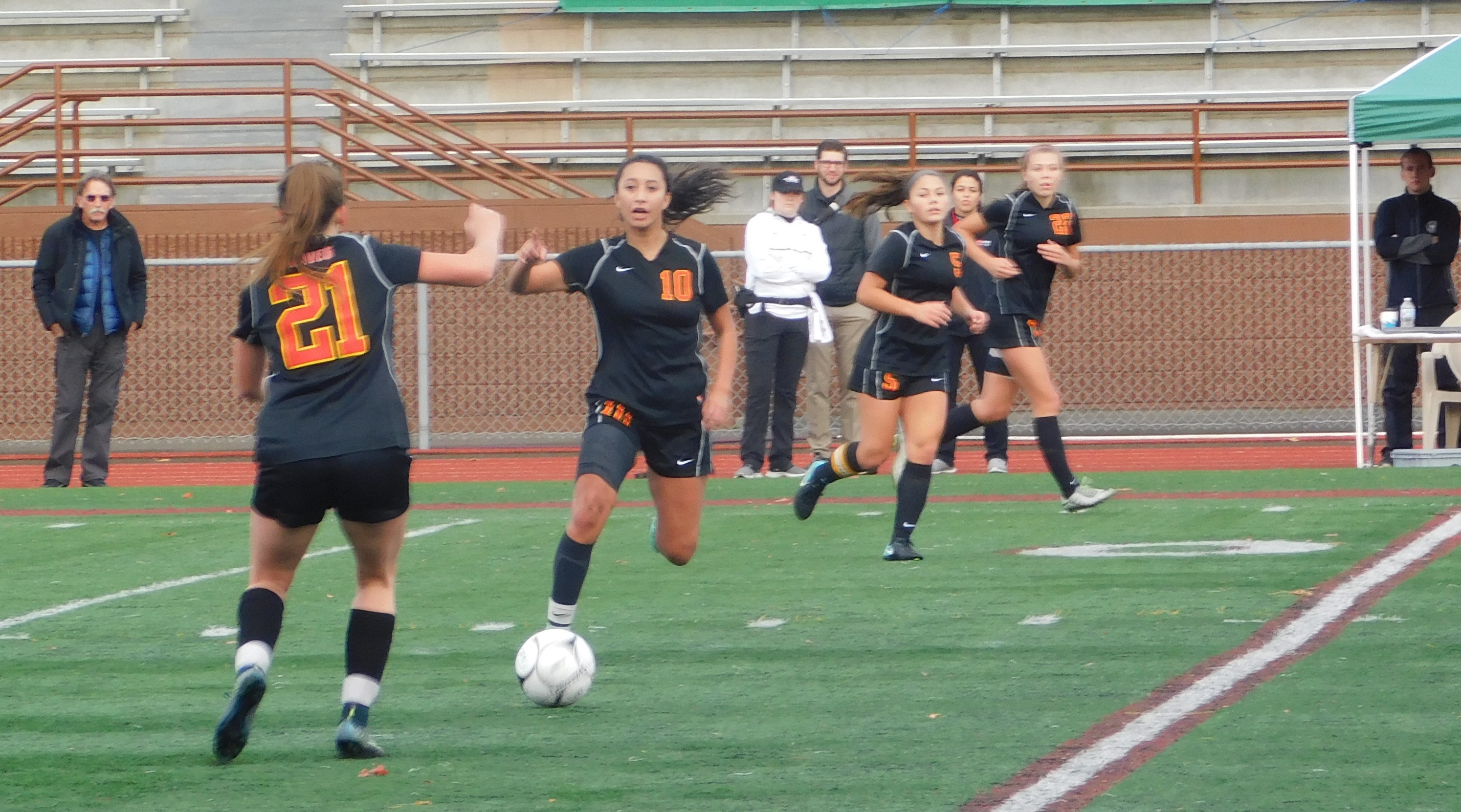 Emily Arron fired a 32-yard shot that skipped off the head of Stadium’s Kayla Fraser and into the left corner of the net in the 30th minute for a 3-1. Stenberg made it 4-1 with a rebound score at the right post in the 75th minute after Emily Arron’s shot went off Stadium goalkeeper Katherine Nelson.