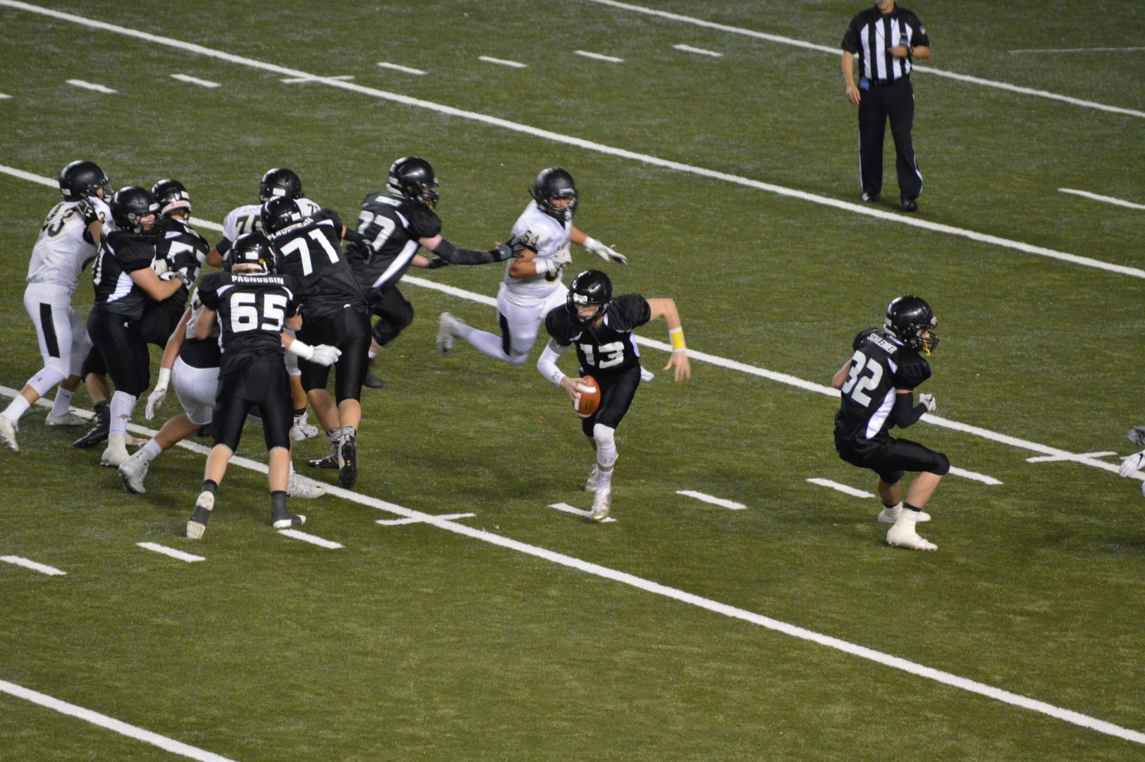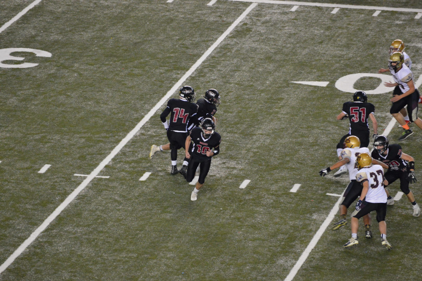 Isaak put a punctuation mark on the outcome late in the third quarter. For the only time in a game featuring onside or squib kicks by both teams on every kickoff, ACH found itself backed up close to its own goal line after recovering an Chance Marsh fumble. On the third play, Isaak kept and found a hole that let him sprint 91 yards for a touchdown and a 64-30 lead.