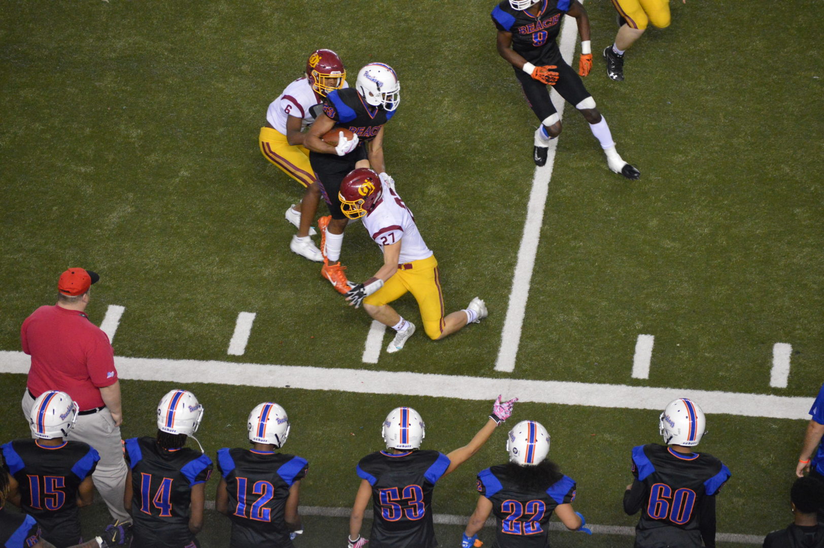 O’Dea set it up with a 9-minute, 19-play 2nd half opening drive capped off Emonte Scott’s 1-yard run to go up 24-3. Beach didn’t get their hands on the ball in the 2nd half until the clock read 3:04.