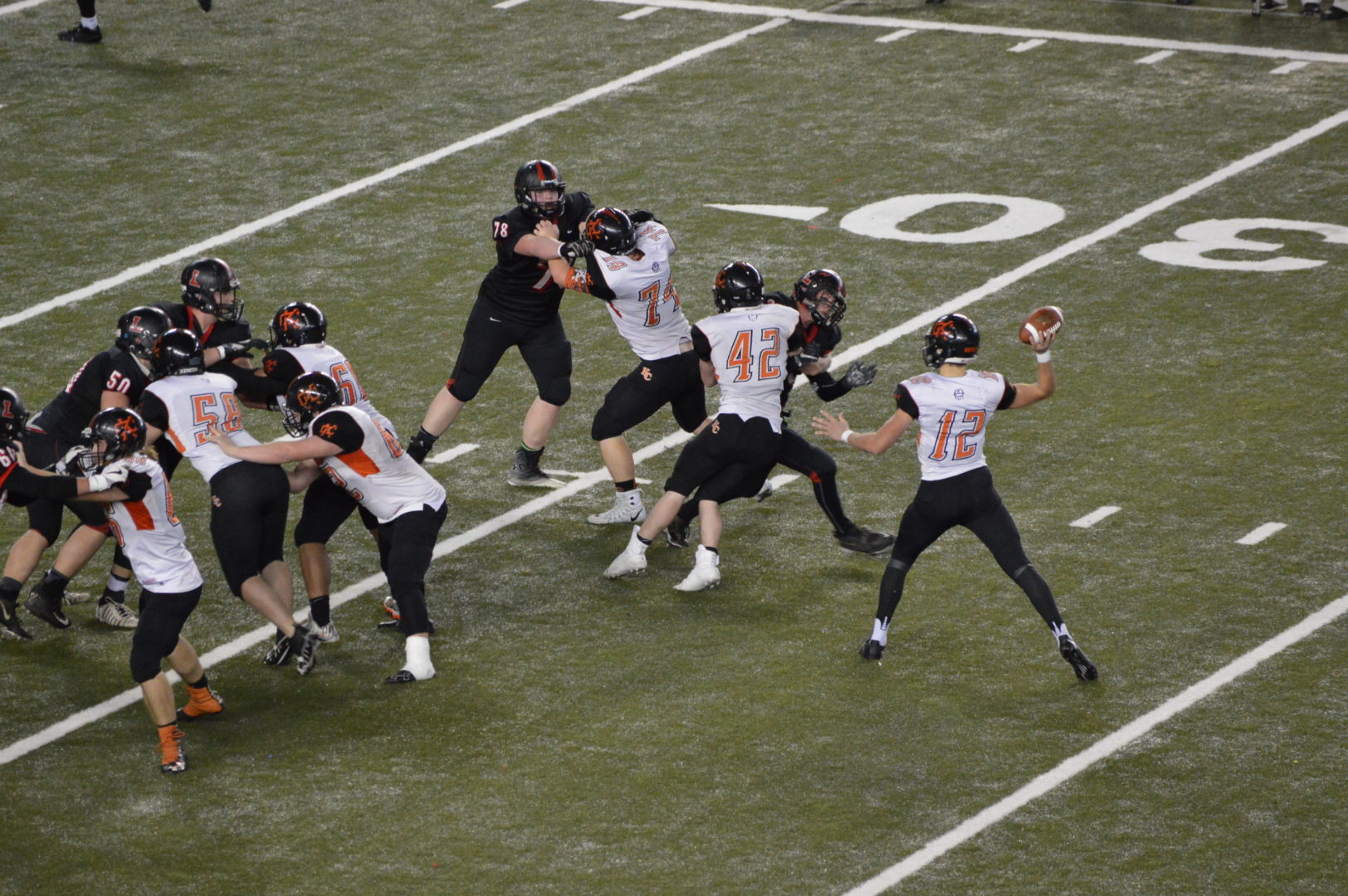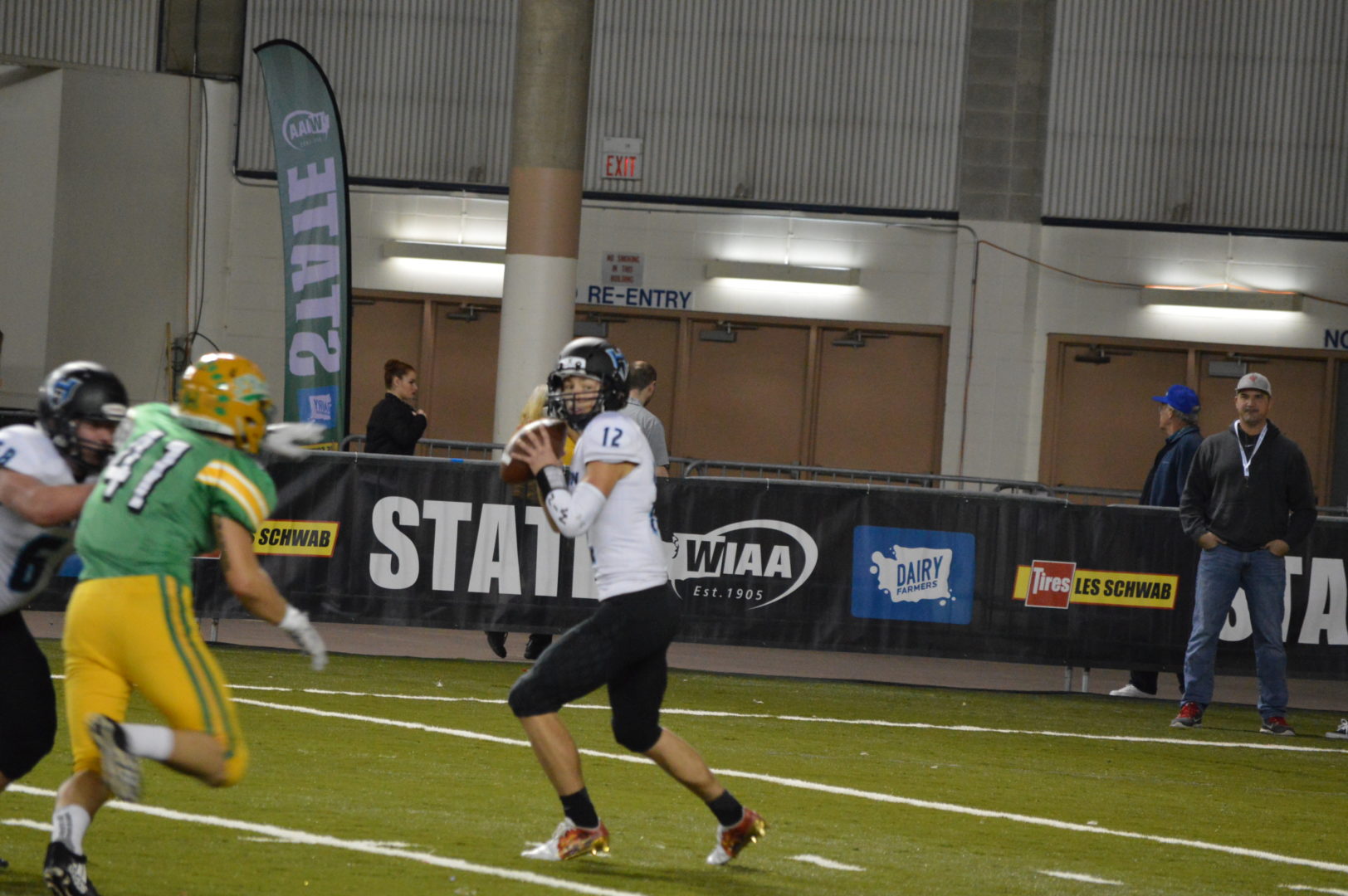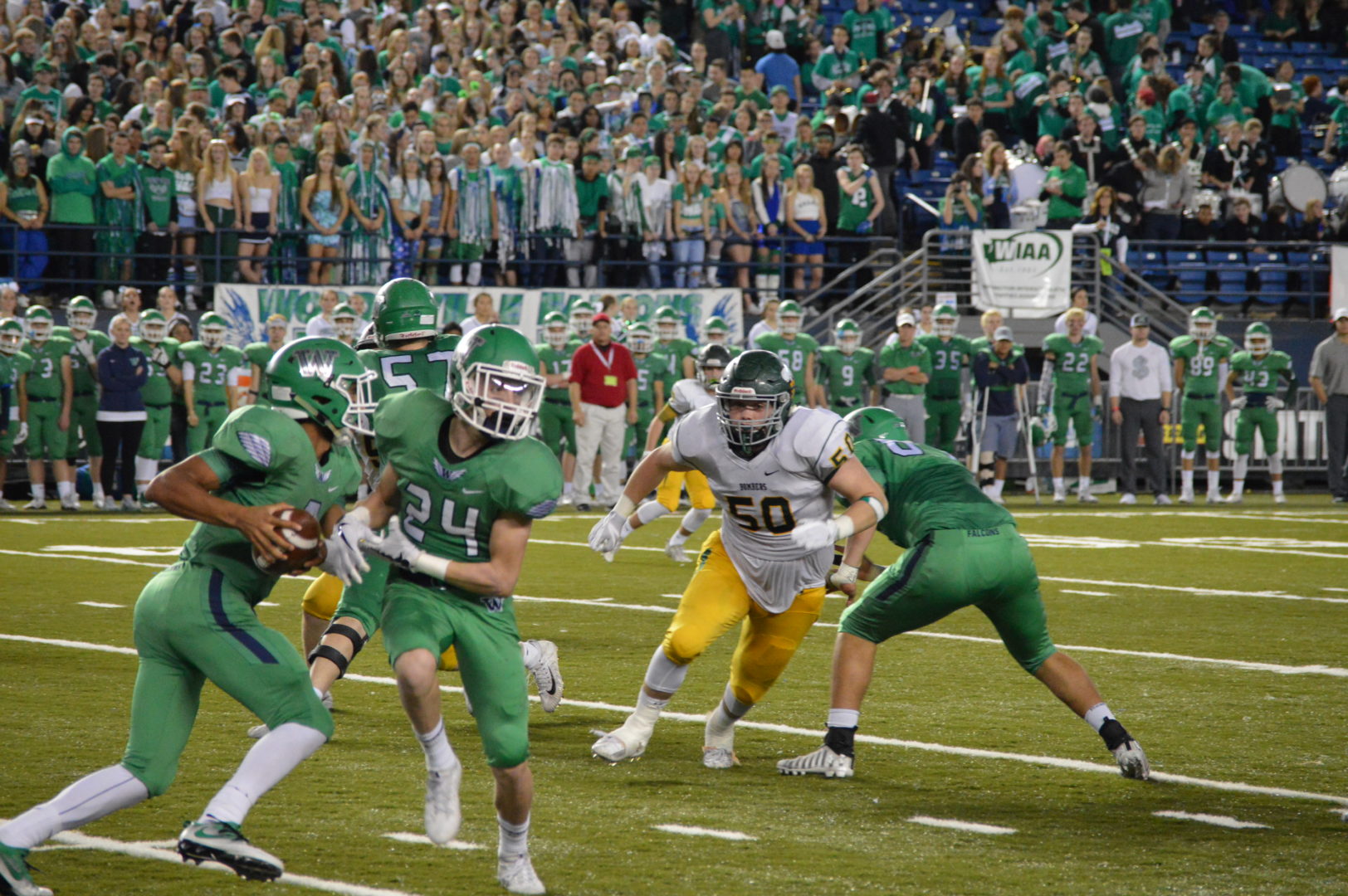Woodinville had a decision to make at the break, play their final 24 minutes like a Championship team or waive the white flag. There is no white flag on the Falcon’s sideline and they came to play. The Falcon defense showed what most thought and shut out the Bombers in the 2nd half. In fact Woodinville would outgain the Bombers in the end offensively and put up 1 more 1st down.