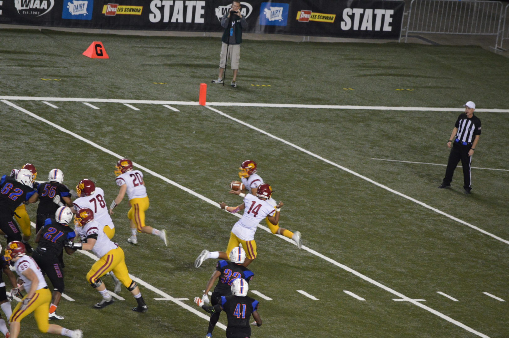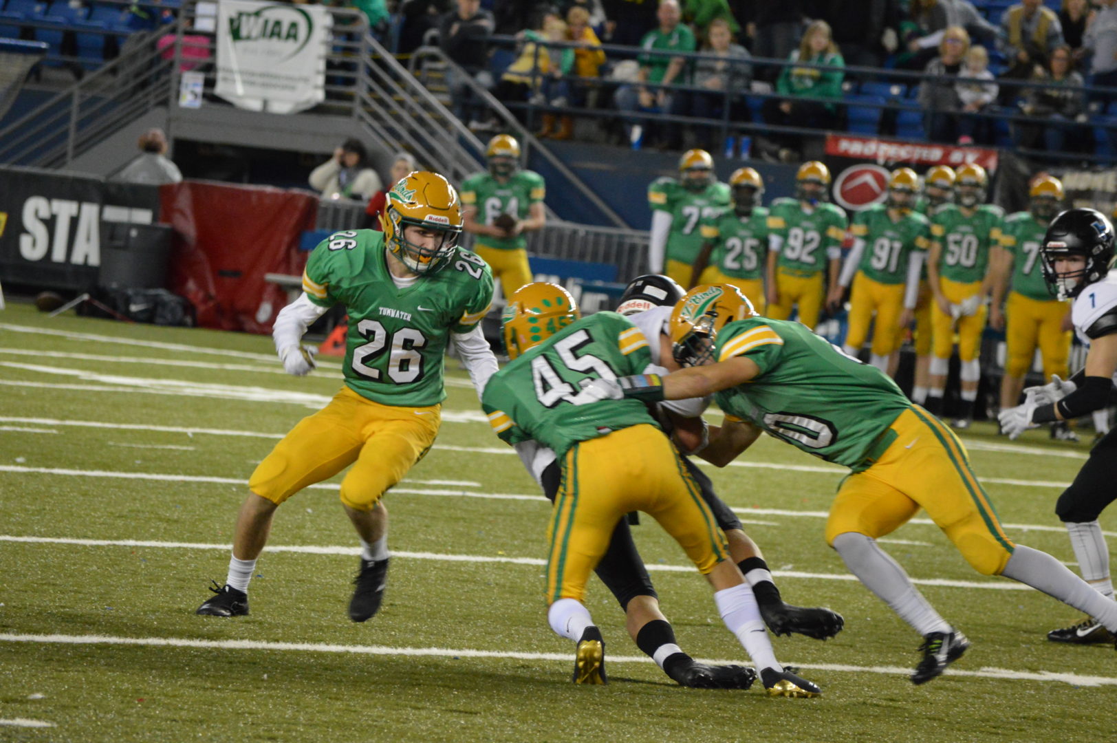 (Tacoma, WA) It shaped up as a battle of contrasting styles and schools; Tumwater’s potent running game against Hockinson’s passing attack. The fourth smallest school in Class 2A against one of the largest.
