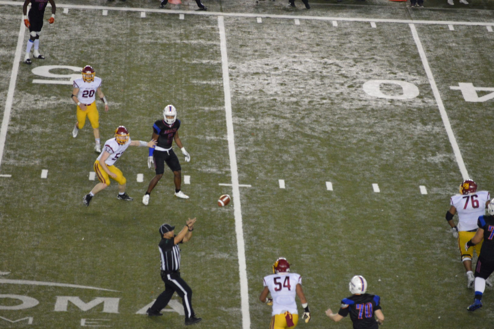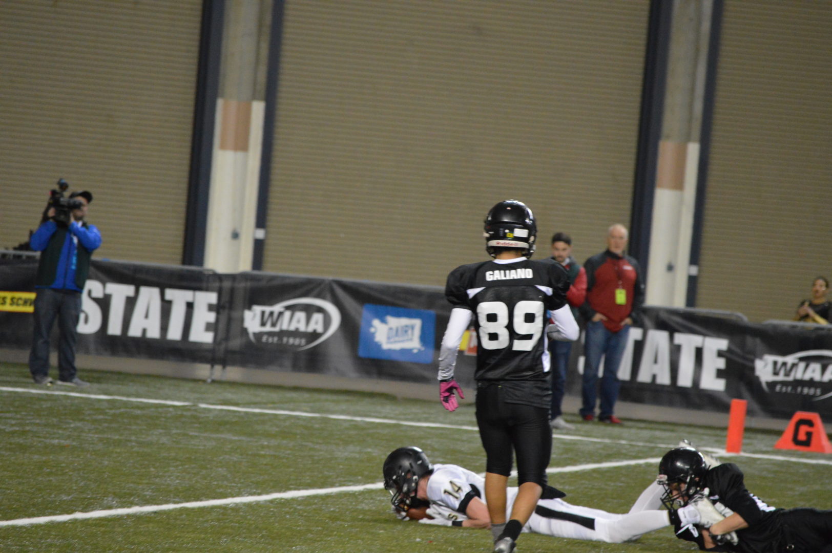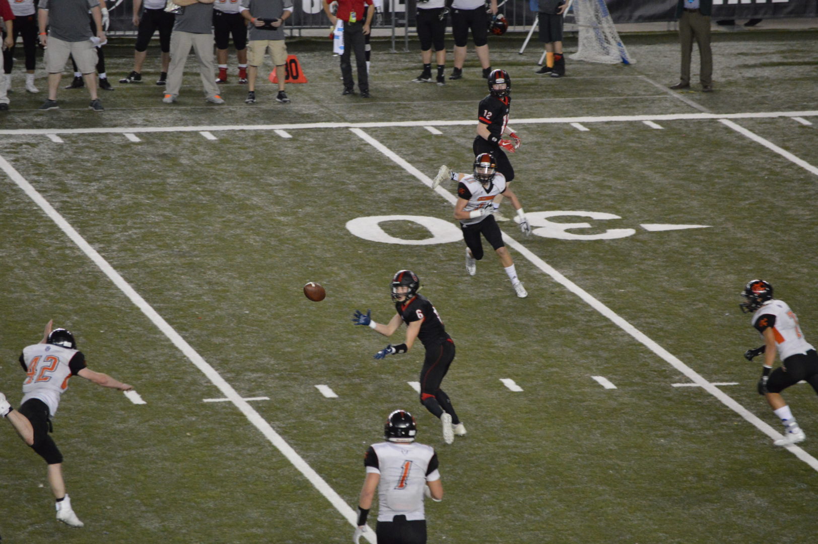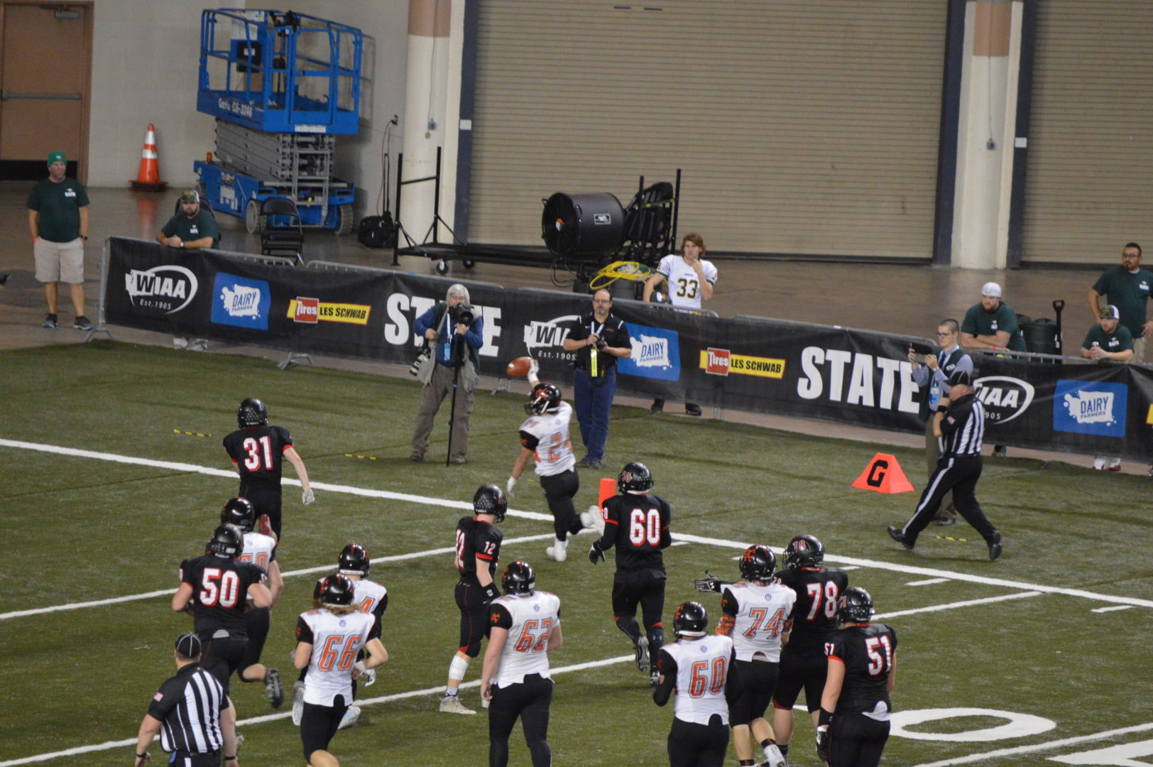 Coach McDonald told us they thought they had to run another play and so they handed it off to Wetmore on a spectacular sweep he reversed course from the right side of the field where he was headed and came all the way back from where he started on the left side seemingly just to find a place to stay in bounds and keep the clock running. Instead Wetmore found a lane and took it to the house for an apparent touchdown with 1:03 left to play in the game. But a penalty flag actually was a gift to Kalama and brought the play back taking the points off the board.