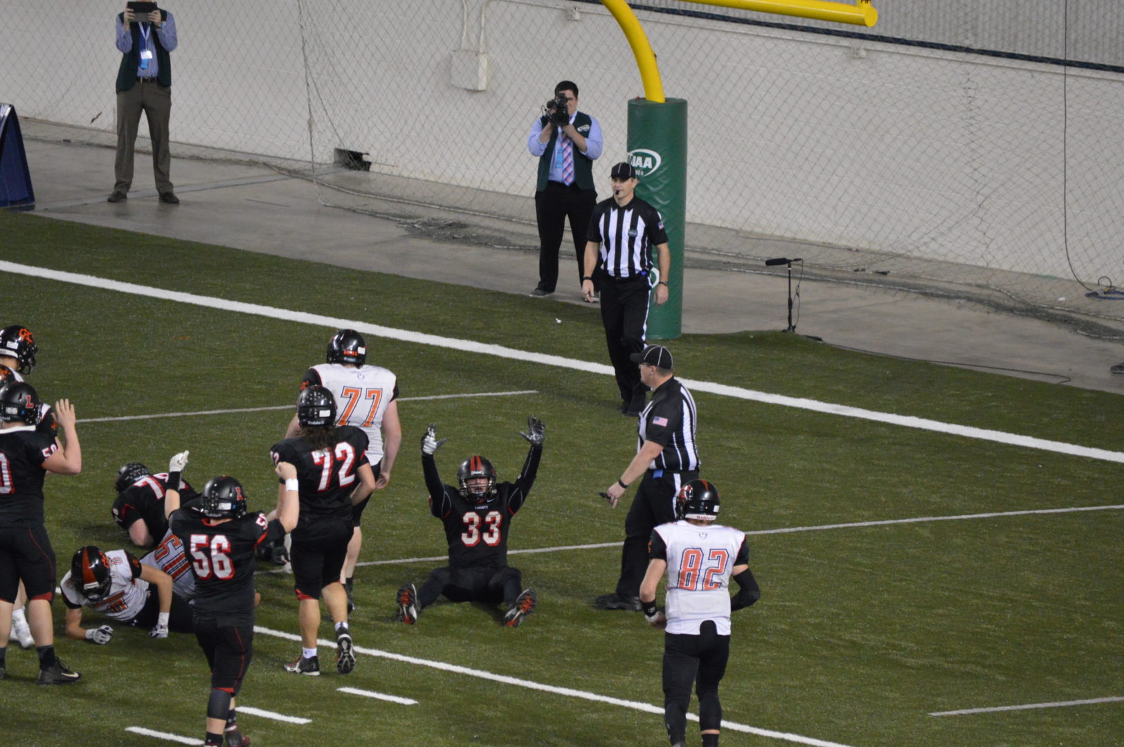 For the rest of the game, Liberty scrambled to make up the lost point with two-point conversion tries while kicker Justin King made his only one-point try.