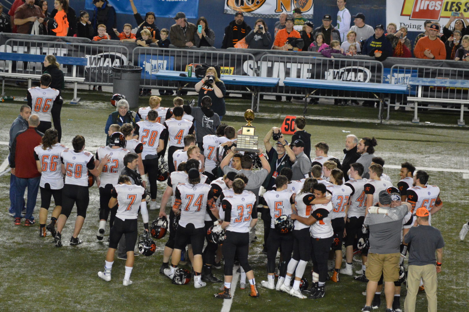 Had the TD stood and the Nooks converted a 1 point PAT or missed the PAT it would have left more than a minute on the clock and a 1 score game for Liberty to have a chance to tie it. But with the penalty and only 63 seconds to go and it being 1st down even with the 1 time out remaining there was no way Liberty could stop the clock from running out and to the relief of many Nooks fans that’s what Kalama did kneeled their way to their 1st State Championship since 1998 and 2nd Title in school history.