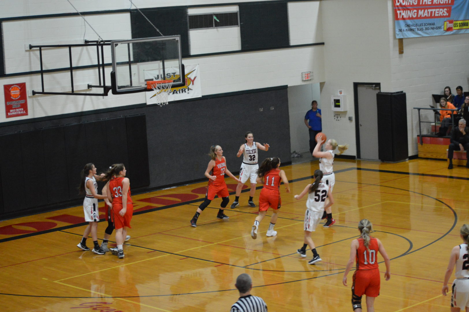 (Toledo, WA) The Indians knocked off the Vikings Wednesday night with a stingy defense over the first 16 minutes. The lock down D held Mossyrock to just 6 in the 1st and 7 in the 2nd. The Toledo offense was also on right at the start of the game taking a 12-7 lead. Many of the shots came off the defense with some fast break opportunities. The Tribe stretched the lead to 10 at the break.