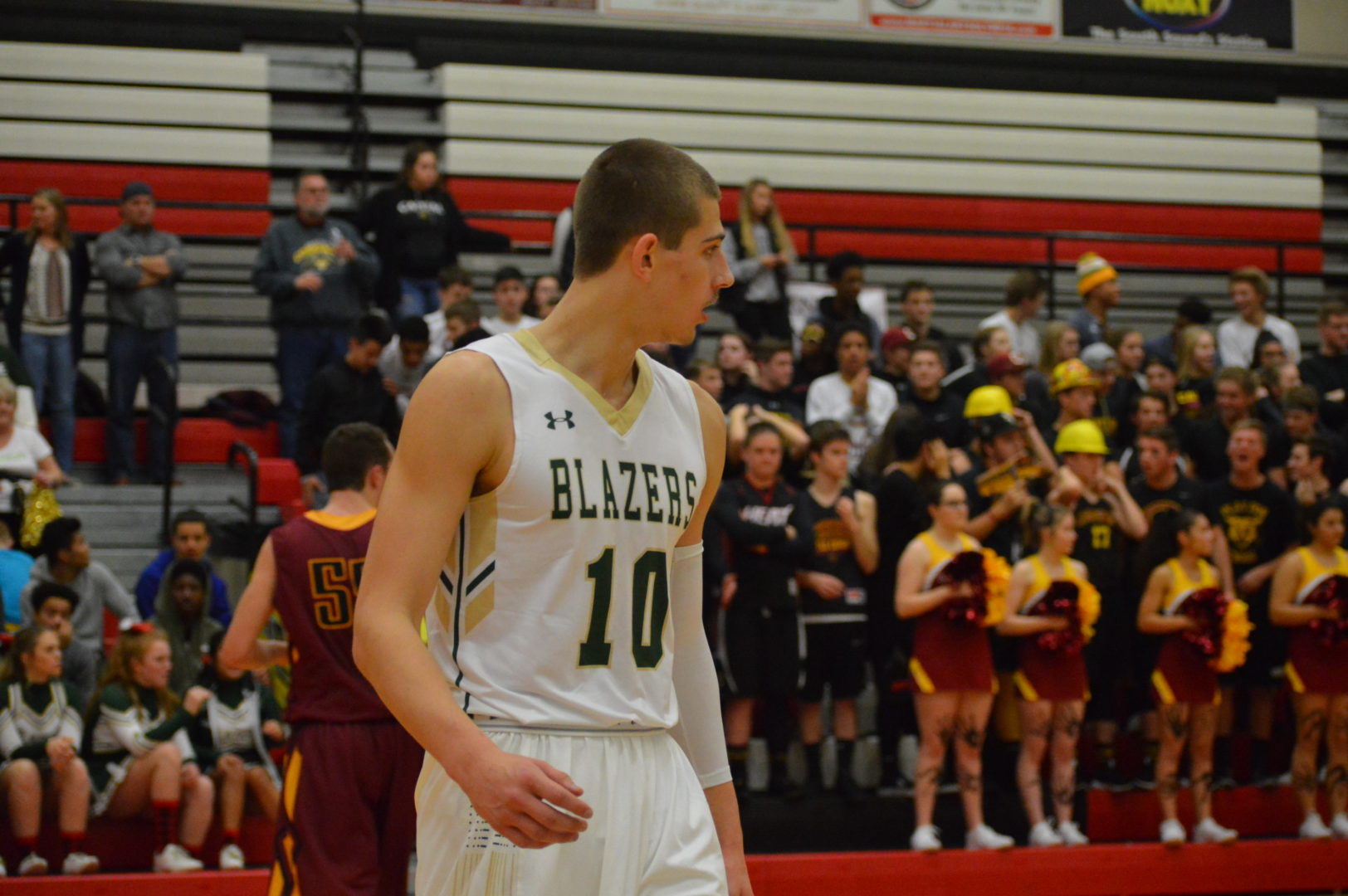 In the 2nd half it was a completely different story as the Blazers defense showed up big time. Pressing the Cougs with Stevenson, Eli Morton and Hunter Campau the Blazers made it tough for the Cougs to get out of the back court, in fact getting one 10 count. When the Cougars did get it over the mid-stripe Timberline’s pressure continued forcing several turnovers or errant shots.