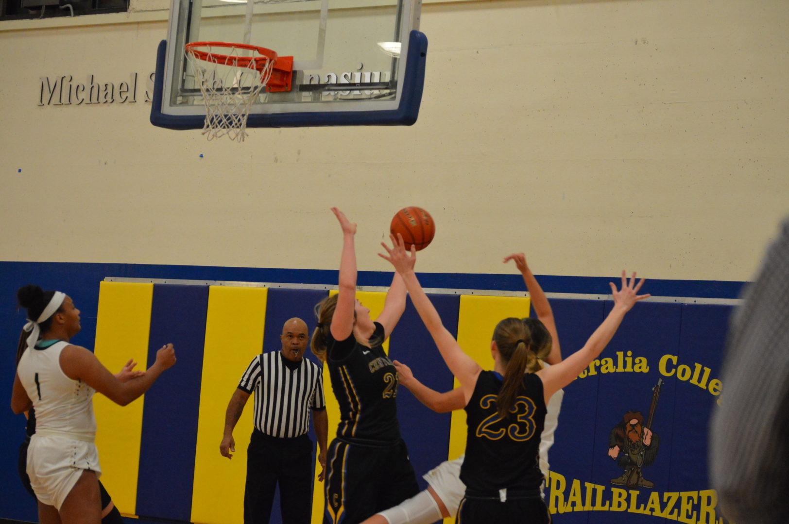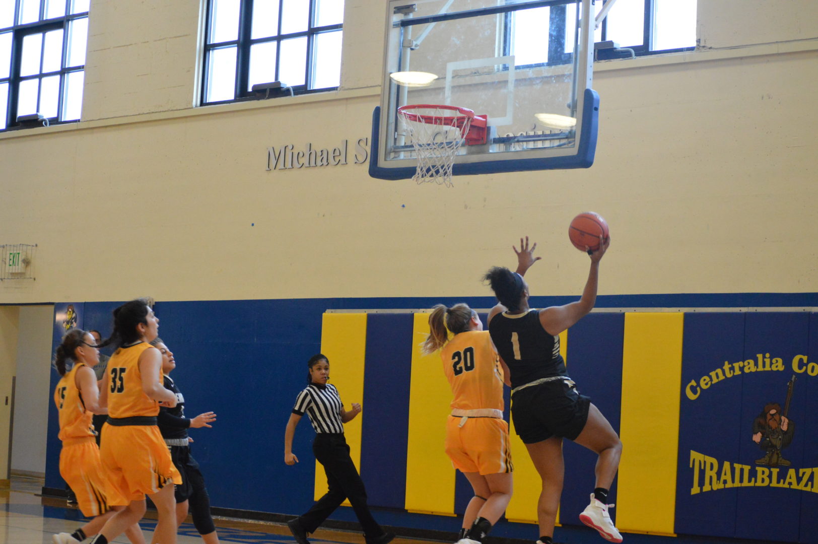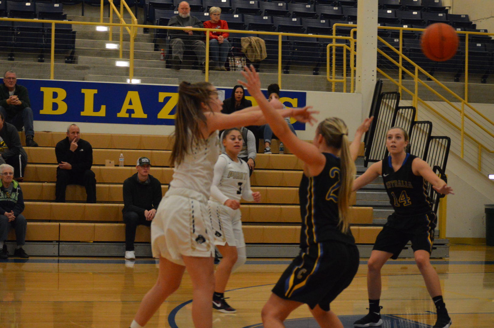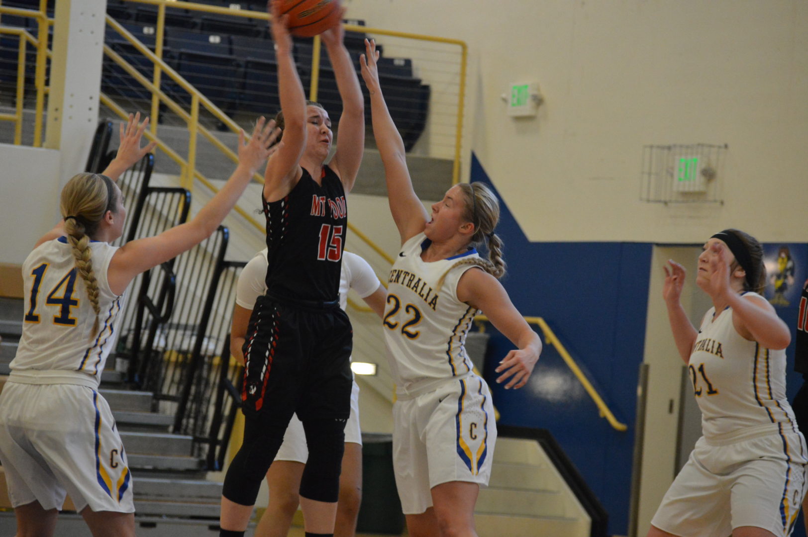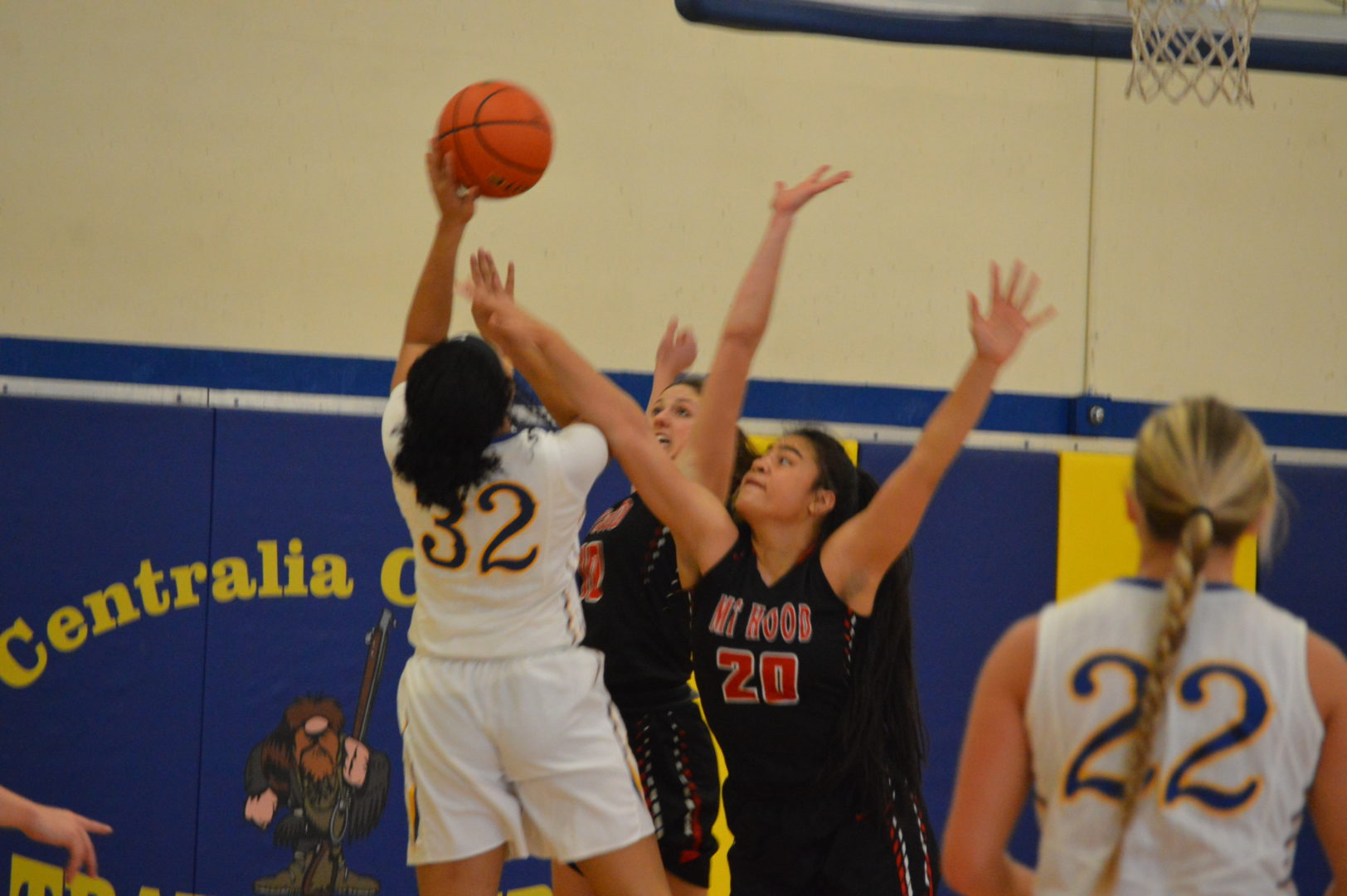 (Centralia, WA) The Blazers knew they would have to deal with a speedy and swarming pressing defense and they struggled in the first half. Although they led after the 1st quarter they trailed at the half. Centralia would give up 17 of of Mt Hood’s 34 points by turning the ball over.