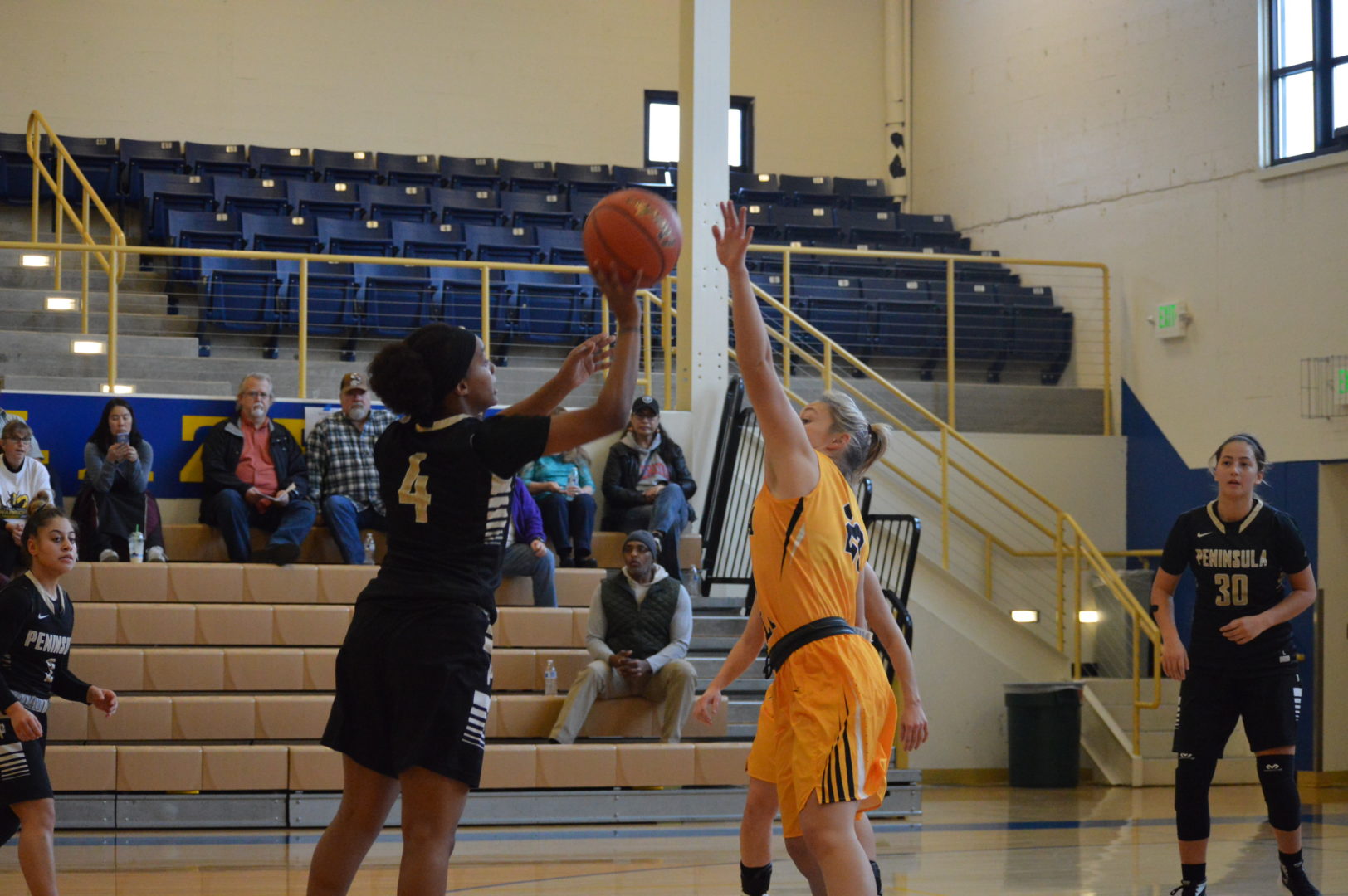 (Centralia, WA) The Mt Hood Saints used a huge 2nd quarter to take their 1st lead in the game and never look back. Peninsula jumped out to a 13-10 lead after the 1st quarter but Mt Hood found their groove and knocked down 25 2nd quarter points while holding the Pirates to 13 for the 2nd straight quarter and the Saints too a 35-26 lead into the break.