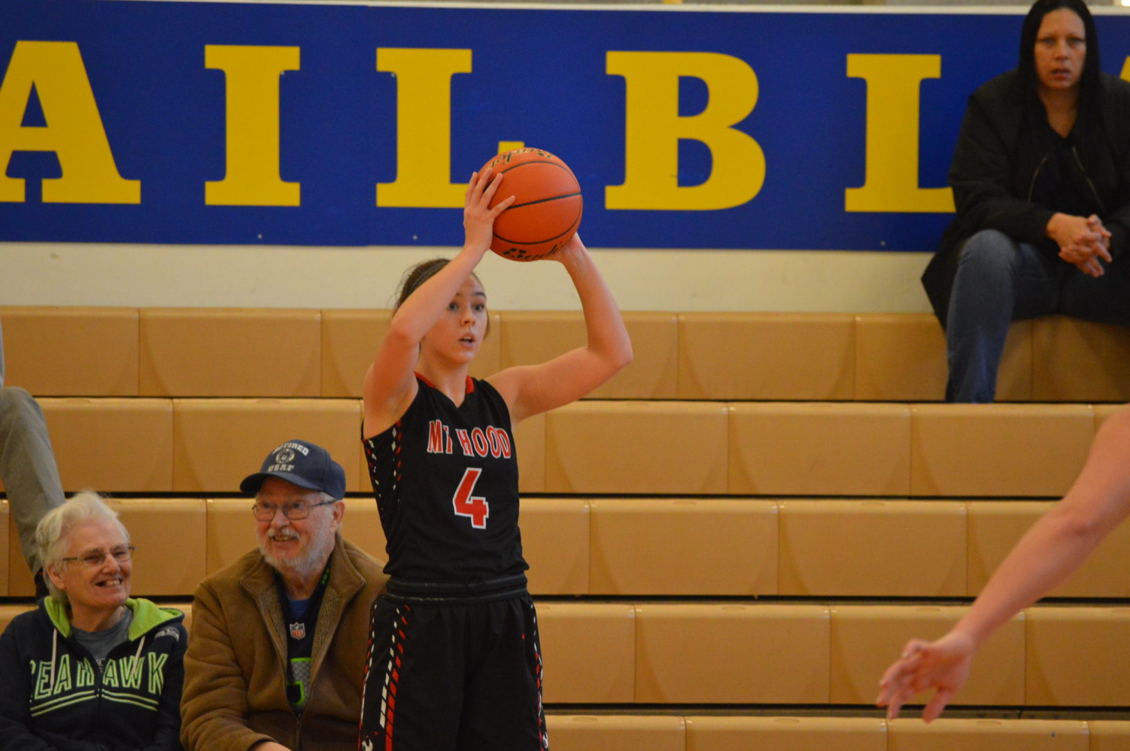 Centralia Coach Caleb Sells told us they worked on the press and talked about it but until you experience it is when the real challenge comes into play. At halftime Sells urged his team to continue the late success they had with breaking the press but also had to get a hand in the face of Mt Hood’s Madison Allen who lit up the nets with 6 3-balls off the bench.