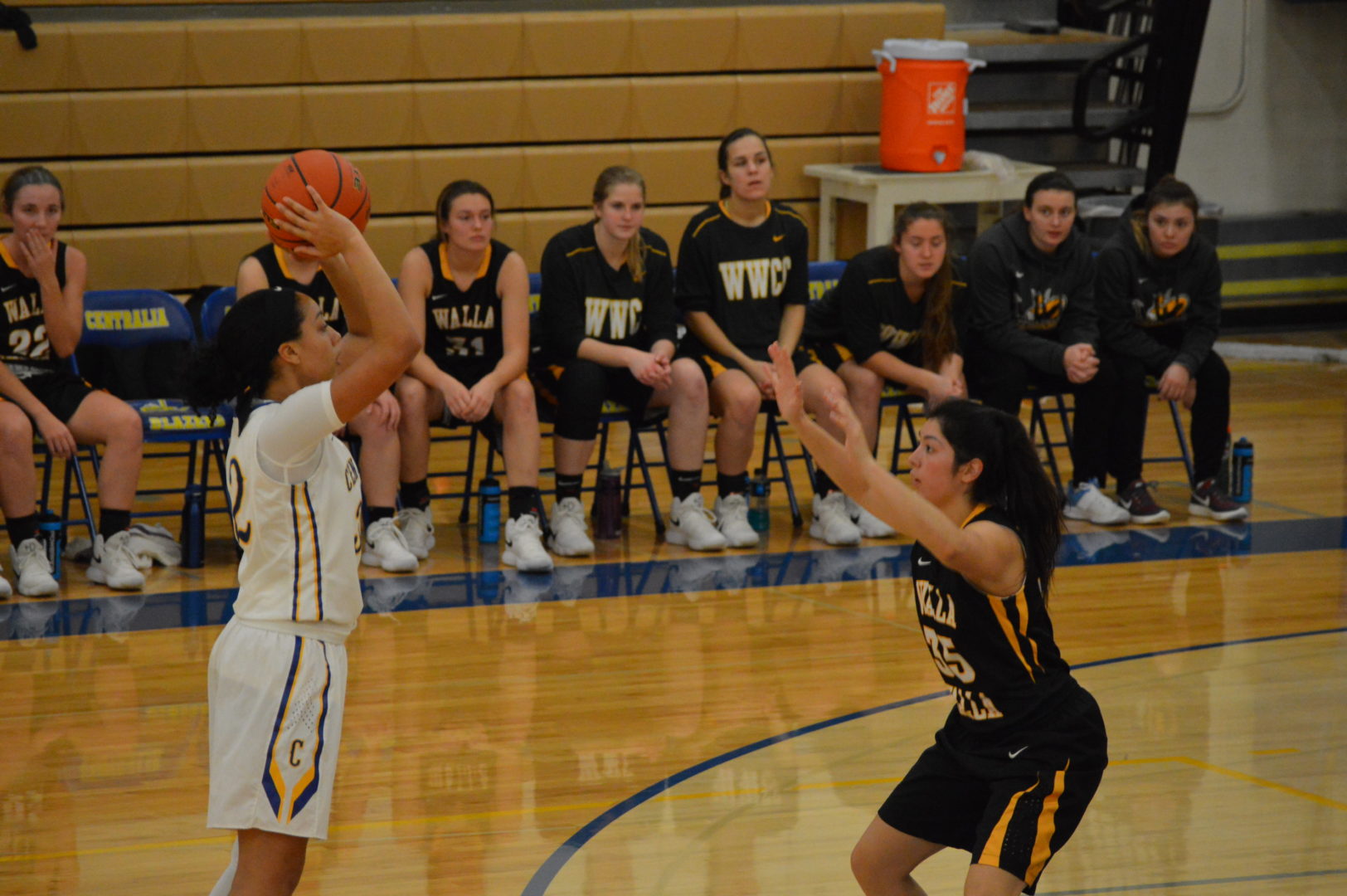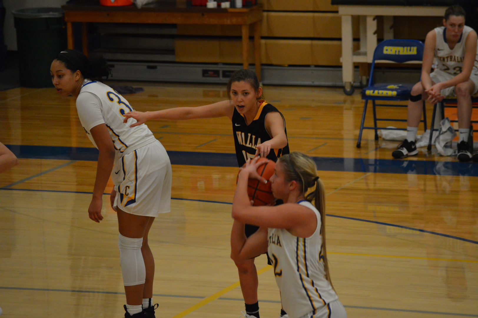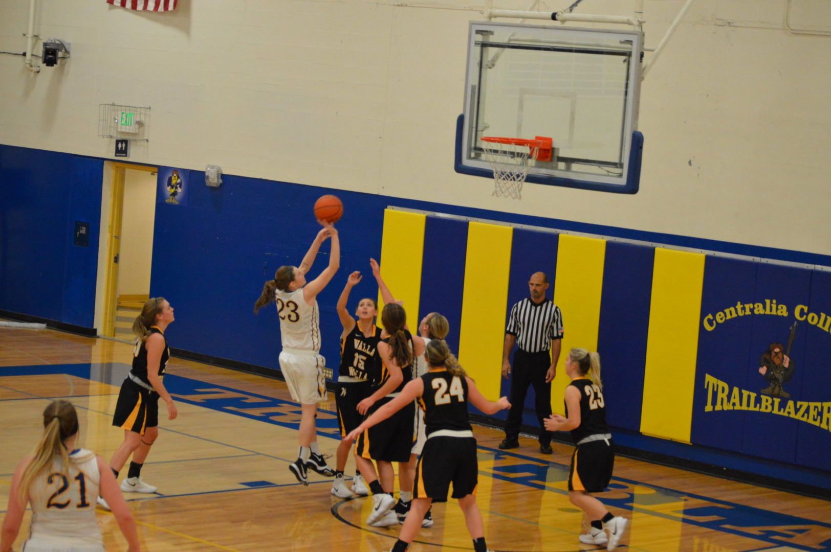 (Centralia, WA) Walla Walla got off to a bit of a slow start and fell behind the host school Centralia after the 1st 10 minutes 15-10. But the Warriors got better with each quarter while the Blazers stumbled especially in the 2nd quarter. Walla Walla put up 15 while the Blazers managed only 4 and fell behind at the break 25-19. Cierra Jo McKeown led the Warriors with 8 points while Teresa Acock hit 2 of her 5 3-balls in the first half.