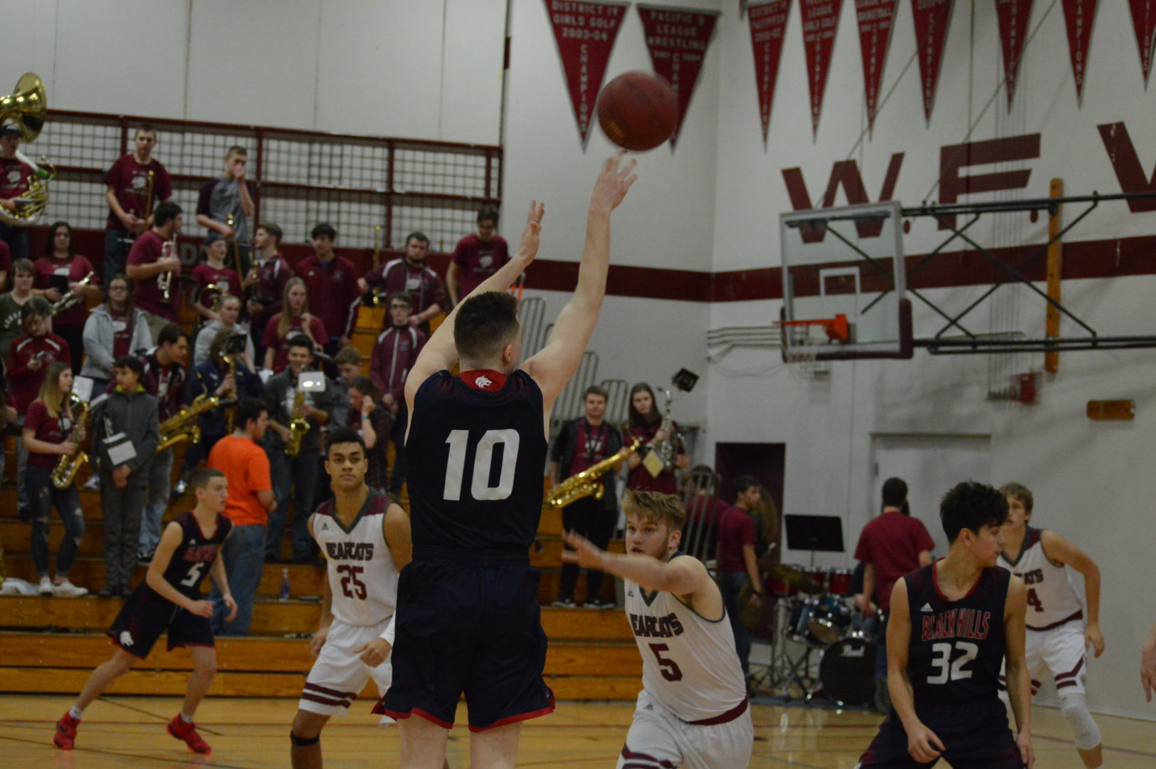 The Bearcats then got off to a hot start in the 3rd hitting 5 straight on a Brandin White 3 and 2 from Nole Wollan and were up 15 threatening to blow open the game. Black Hills did not throw in the towel and heated up from behind the 3-point line. 4 3-balls from Glenn, Joe Crumley and 2 from sophomore Weston Ainsworth off the bench. By the end of the 3rd the Wolves cut the lead to 5 trailing 40-35.