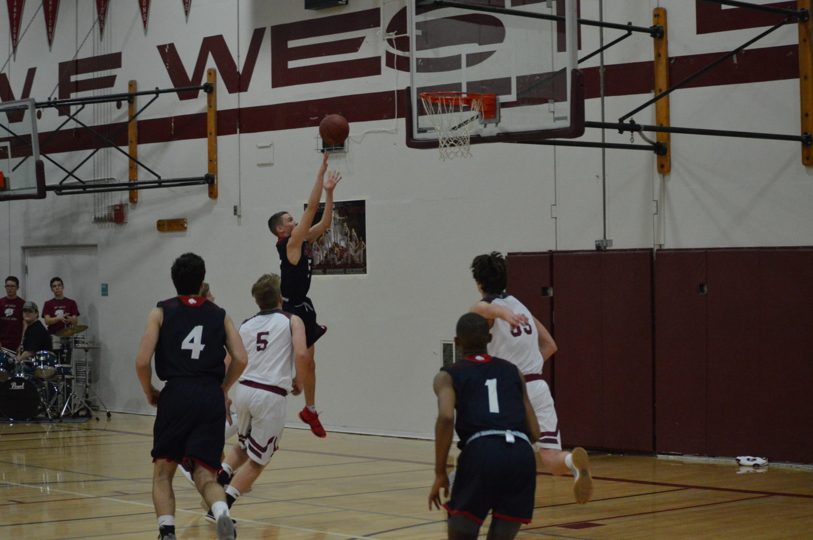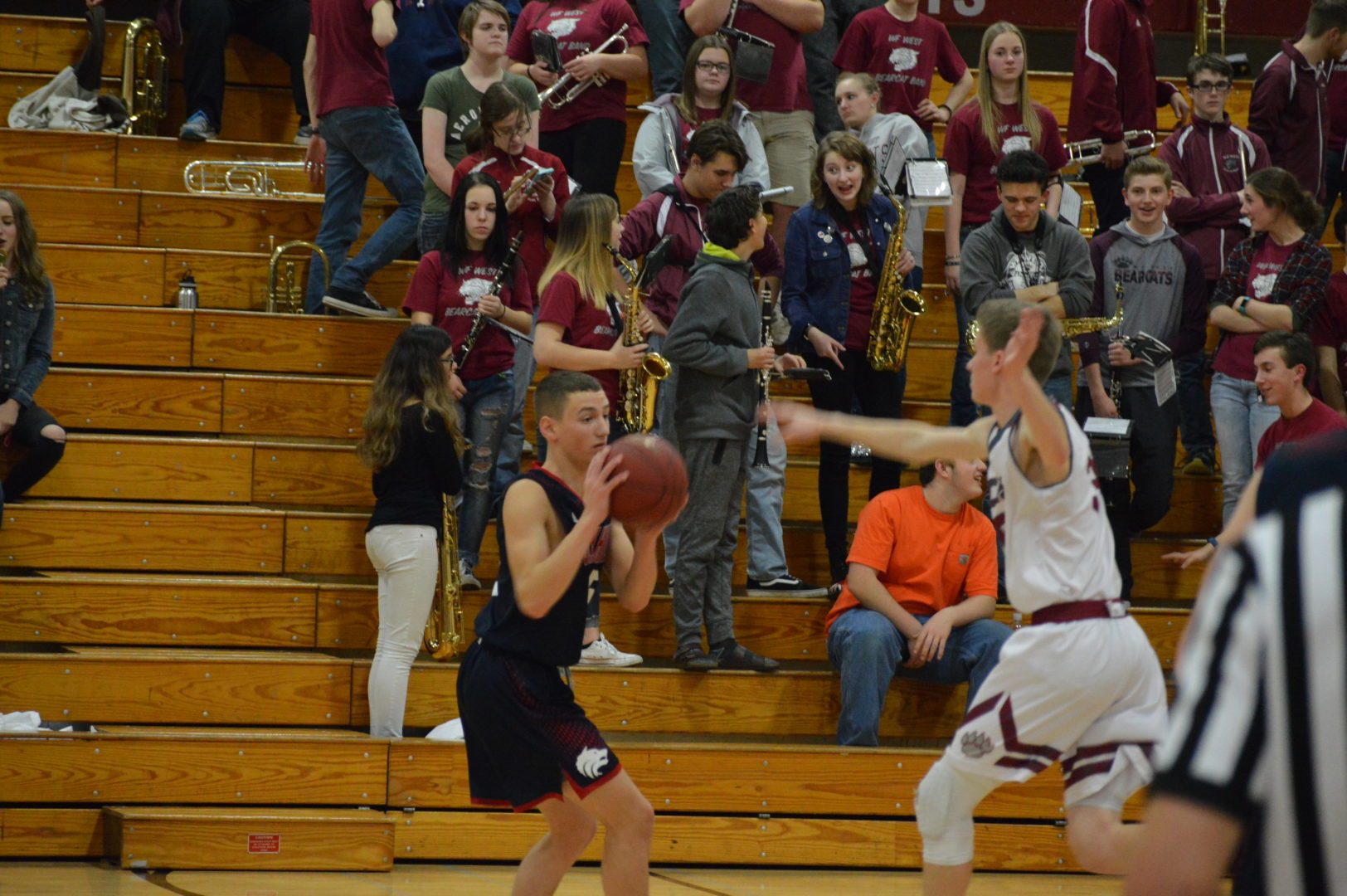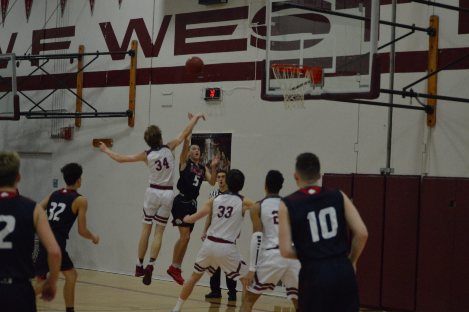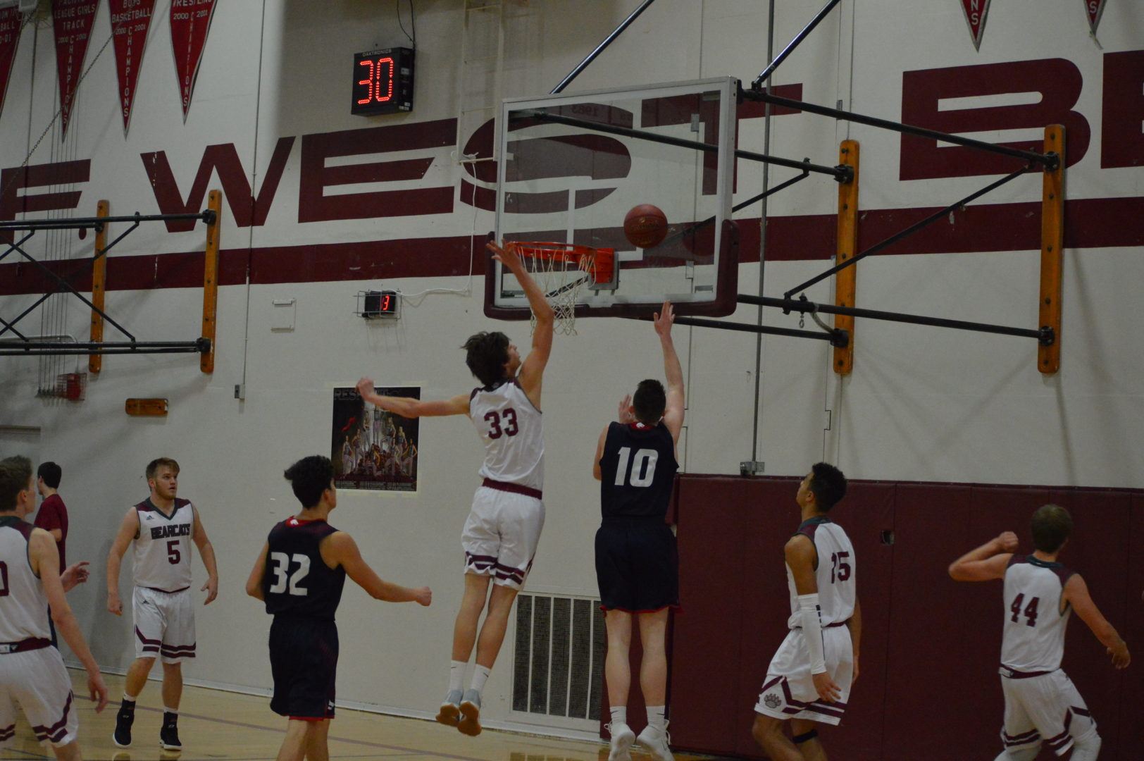 WF West got off to a fast start jumping out to a 17-9 lead after the 1st quarter. Bailey Cooper and Jordan Thomas combined for 10 of those 17. Then to start the 2nd quarter sophomore Tyler Speck stepped up and drained a 3 the 1st of 5 long balls. WF West took a 10-point lead at the break with Thomas leading the scoring with 9. Garrett Glenn kept the Wolves within striking distance with 8