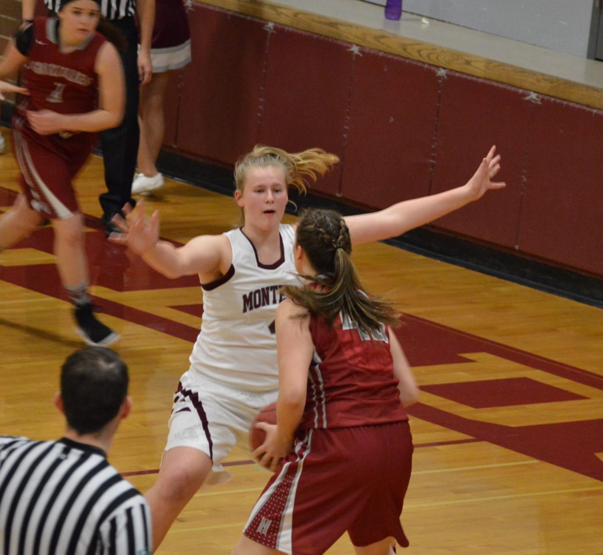 Monte did not panic and got their own big sophomore Zoe Hutchings going in the 2nd quarter and pounded the paint over and over again and Hutchings played huge. Hutchings would score 11 in the 2nd quarter and 14 for the 1st half as the Dogs cut the deficit to 1 trailing 27-26 at the break.Vonhof would score 6 and kept the lead for Hoquiam finishing with 15 1st half points.