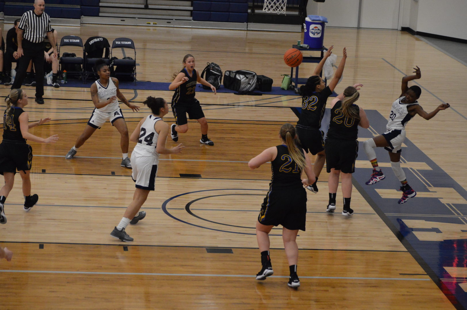 In the 2nd half the Blazers gave up their lead in the final 3 minutes of the 3rd and they would bounce back and forth but 5 points on the final 30-seconds pushed the TCC lead to 4, 46-42.