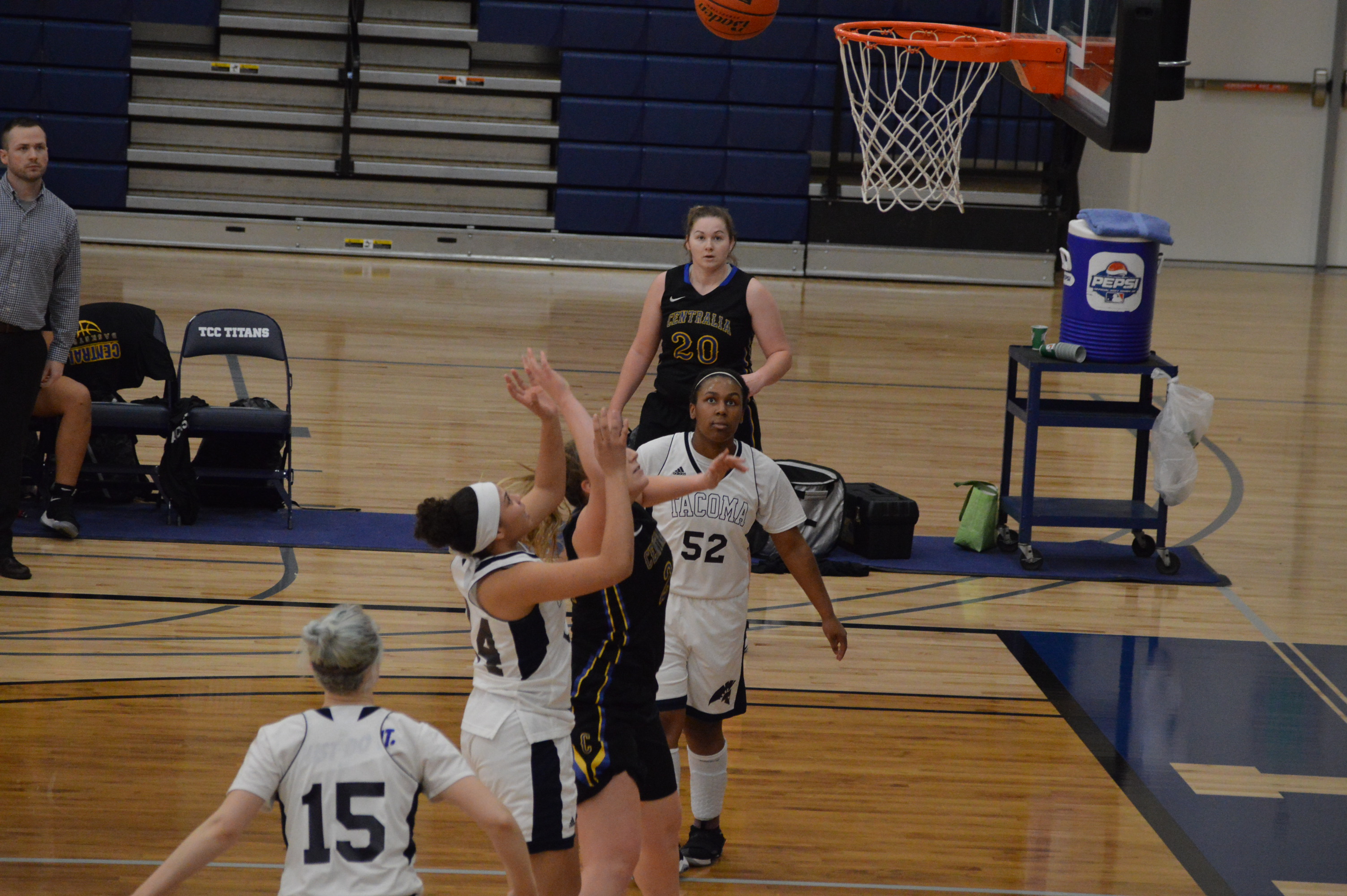 (Tacoma, WA) The Centralia Blazers got off to a fast start in their game at Tacoma and took an early 17-8 lead with Joni Lancaster and Kayla Howard hit early 3-balls. But TCC got back into the game with a late run to cut the deficit to 4. In the 2nd quarter neither team could make a significant move with the Titans making up just 1 and trailing 30-27 at the break.