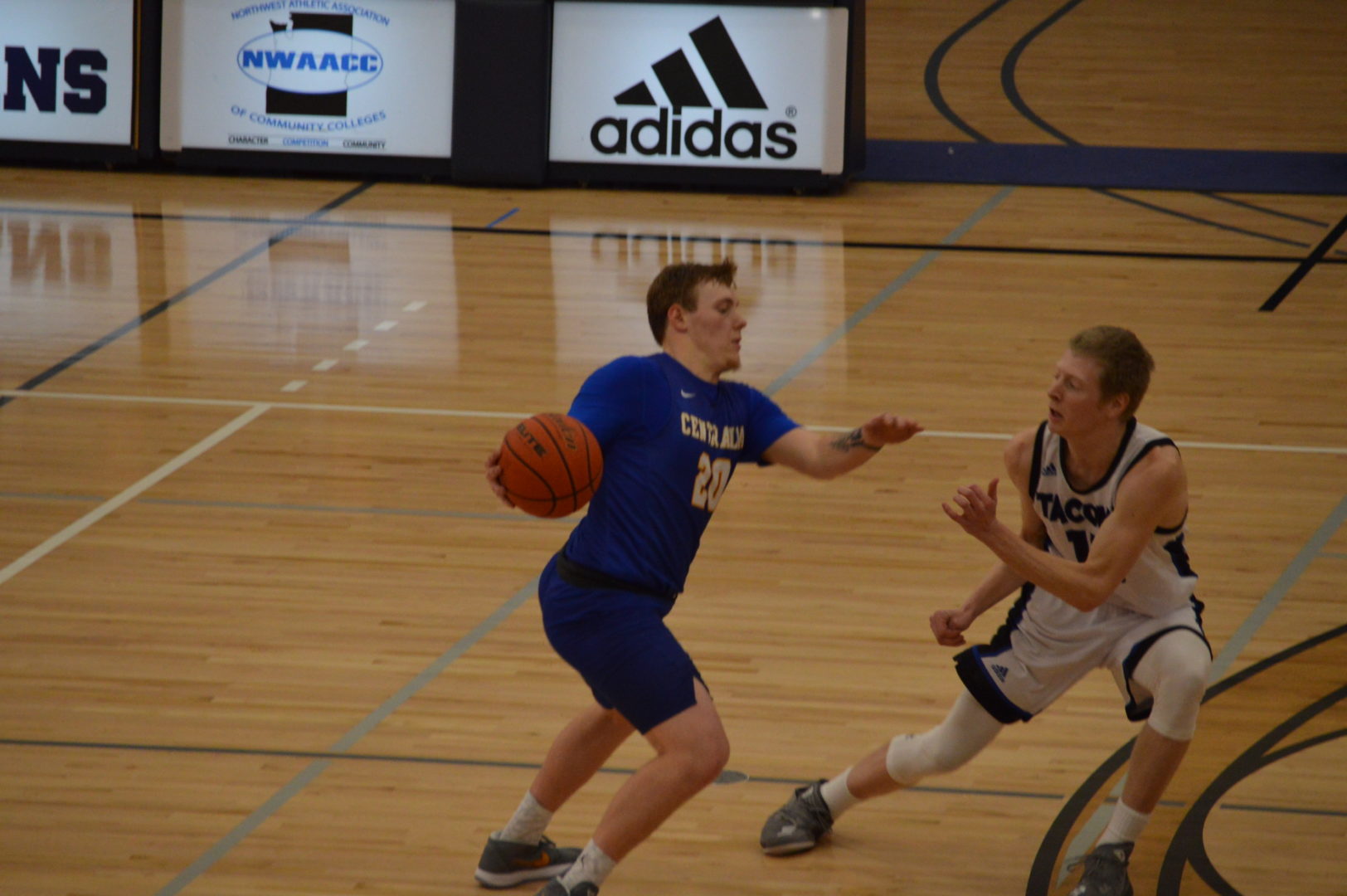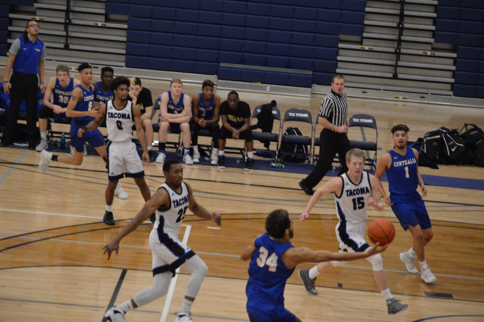 (Tacoma, WA) A bad 3 minutes in the 1st half ended up being the difference in this one. TCC jumped out to an early lead 13-5 but then battled back. Austin Curry led the charge applying pressure to the Titan defense and either scored or went to the line scoring 7 of his 23 in the 1st 7 minutes.
