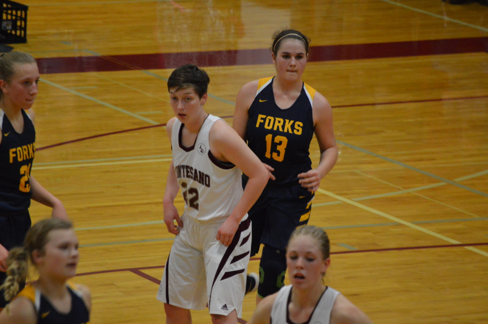 But a total of 9 2nd half points doomed any thoughts of an upset while Monte kept pace with their 1st half production nearly matching it. Forks showed even more life with 4-seconds to go in the half when Iesha Johnson hit a 3 pulling them within 7 but a late foul with 1.7 seconds to go resulted in a free throw from Haylee Perkinson on the 2nd shot and then an errant throw-in from Forks was intercepted and put in by Matti Ekerson at the buzzer to push the lead back to 10.