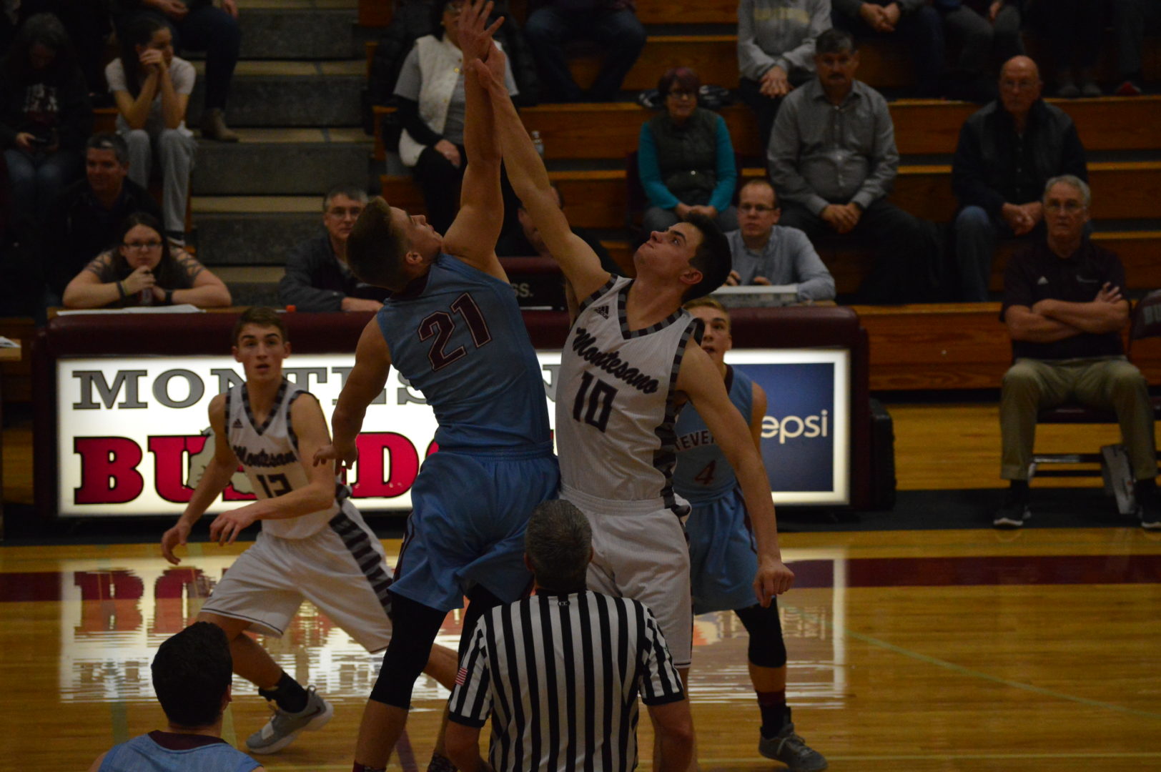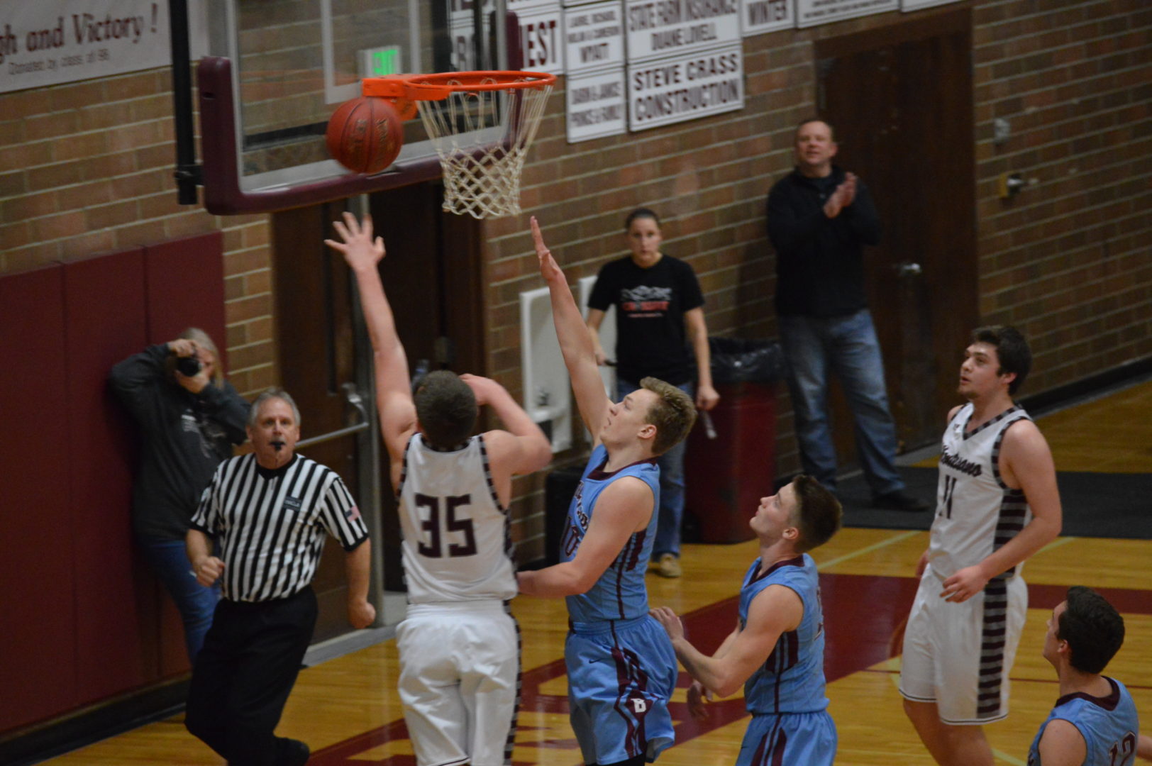 (Montesano, WA) It was Bulldog vs Bulldog but the home team Montesano Bulldogs bark was loudest. Montesano led by Tanner Nicklas who averages about 5 points a game put up a huge double-double with more than 10 rebounds and scoring 23 points, 15 in the 1st half. LJ Valley and Trevor Ridgeway were solid dumping in 13 each while Shayden Farmer also hit double digits with 12. 9 different Montesano players scored for the winning team.