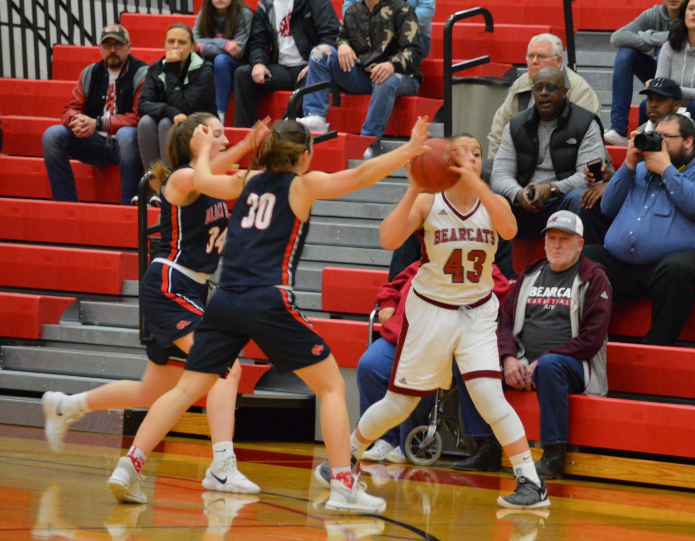 The Bearcats struggled to get into a groove and were doing things they hadn’t done all season like Erika Brumfield got tagged with a 2nd foul early in the 1st quarter limiting her action and several missed passes and blown lay-ins. Coach Tom Kelly was mixing up his line-up trying to find the spark. Julia Johnson was the guiding light for the Bearcats in the 1st half scoring 10 of her 17 points. Taya McCallum also had a solid effort off the bench coming in for Brumfield playing tight defense and grabbing several rebounds.