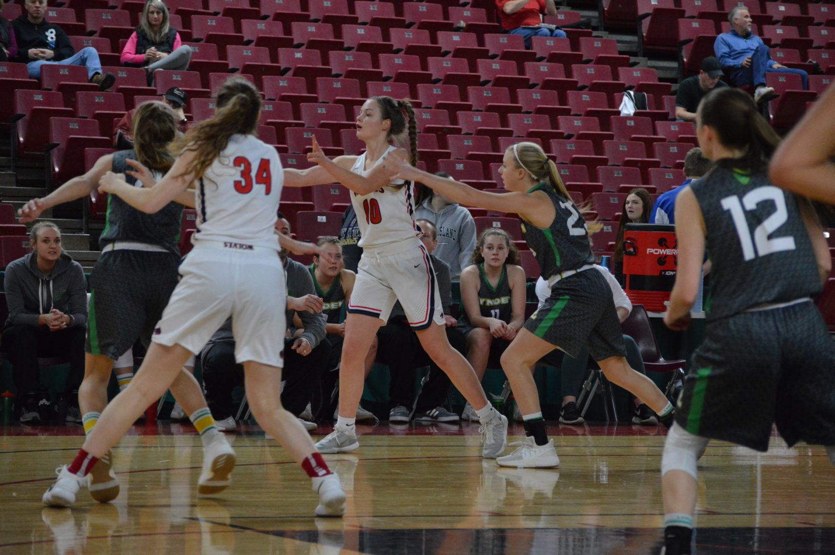 East Valley’s balanced scoring propered them into a Friday 5:30 p.m. semi-final against top-ranked W.F. West. Five players reached double figures: Kalli Willett 12, Natalie Andreas and Delana Bivins 11 each, Alyssa Valdez and Ashlynn Slyve 10 each.