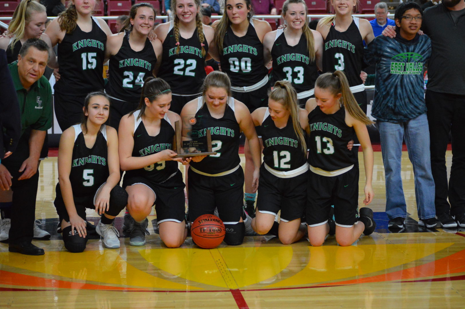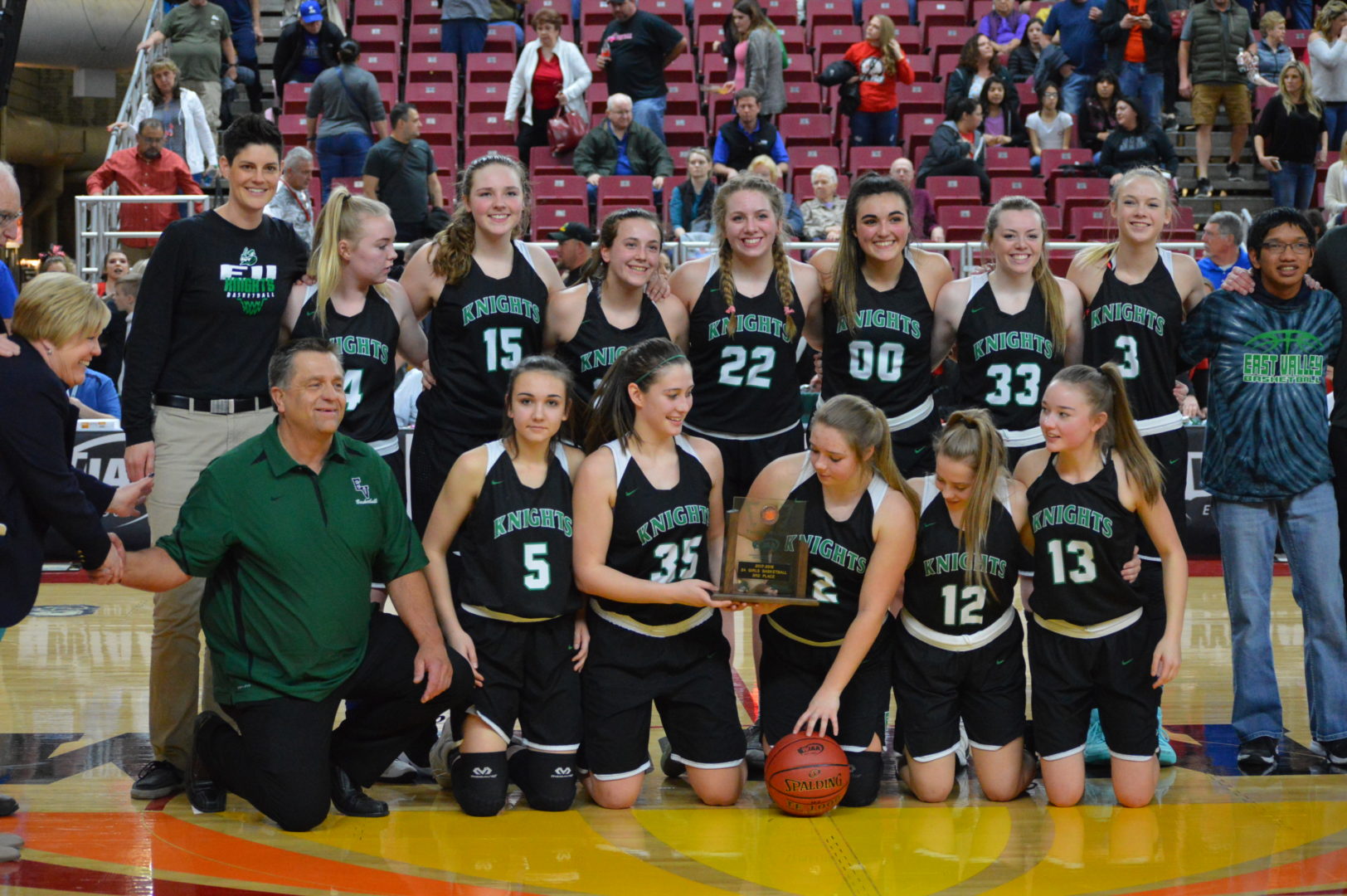 The Knights held Lynden to 15.8 percent shooting in the second half to insure the Lions would not repeat as 2A champions. Grace Wilkinson, who also had 2 assists and 3 blocked shots, lead East Valley with 16 points. Faith Adams contributed 13 points while Brie Holecek tallied 10 points and dished out 4 assists.