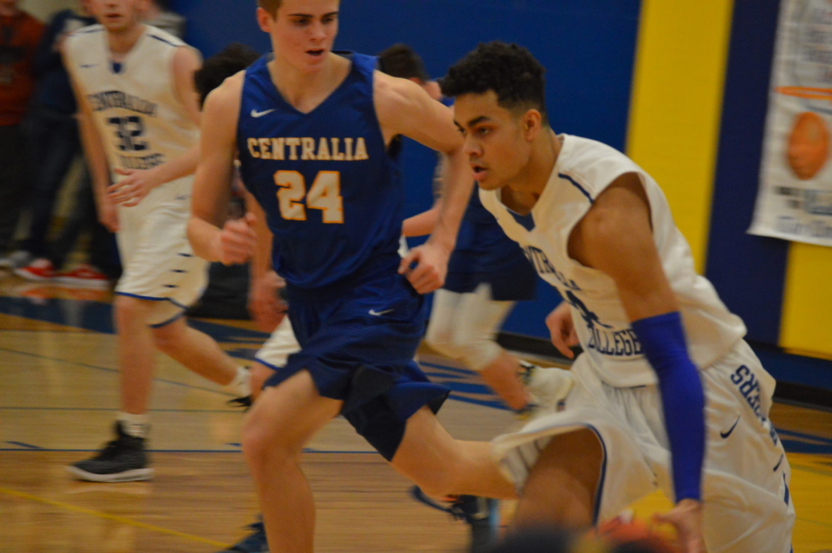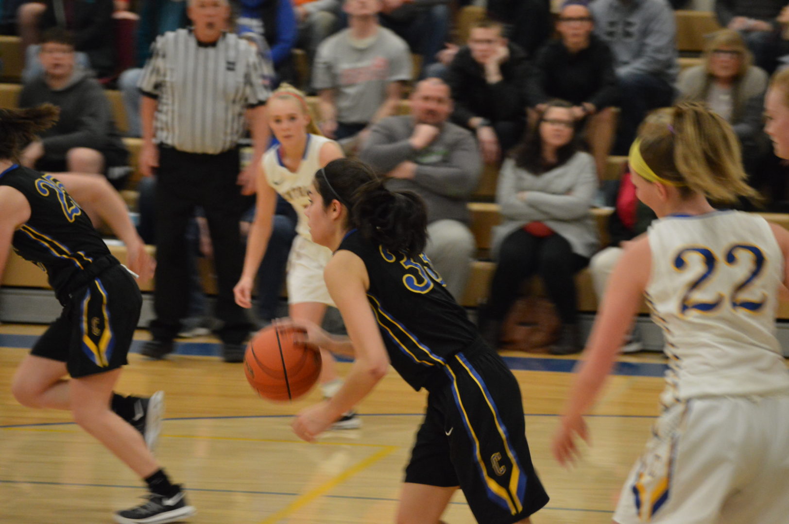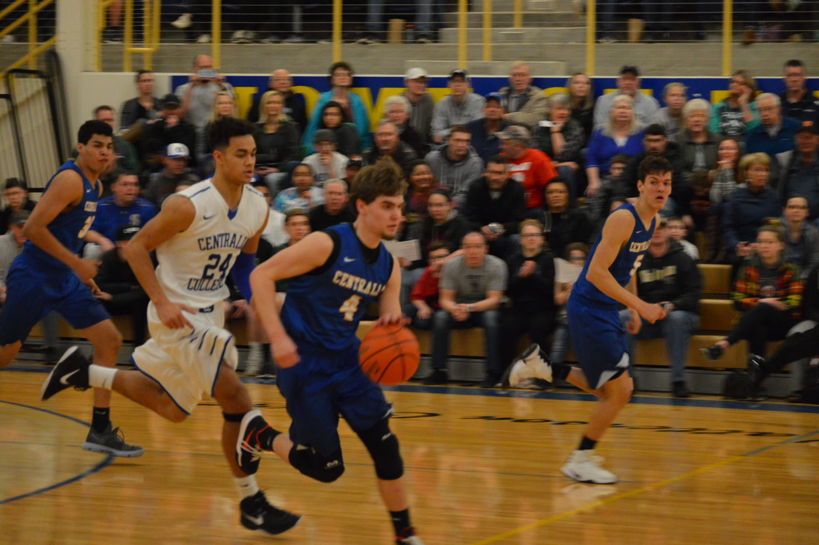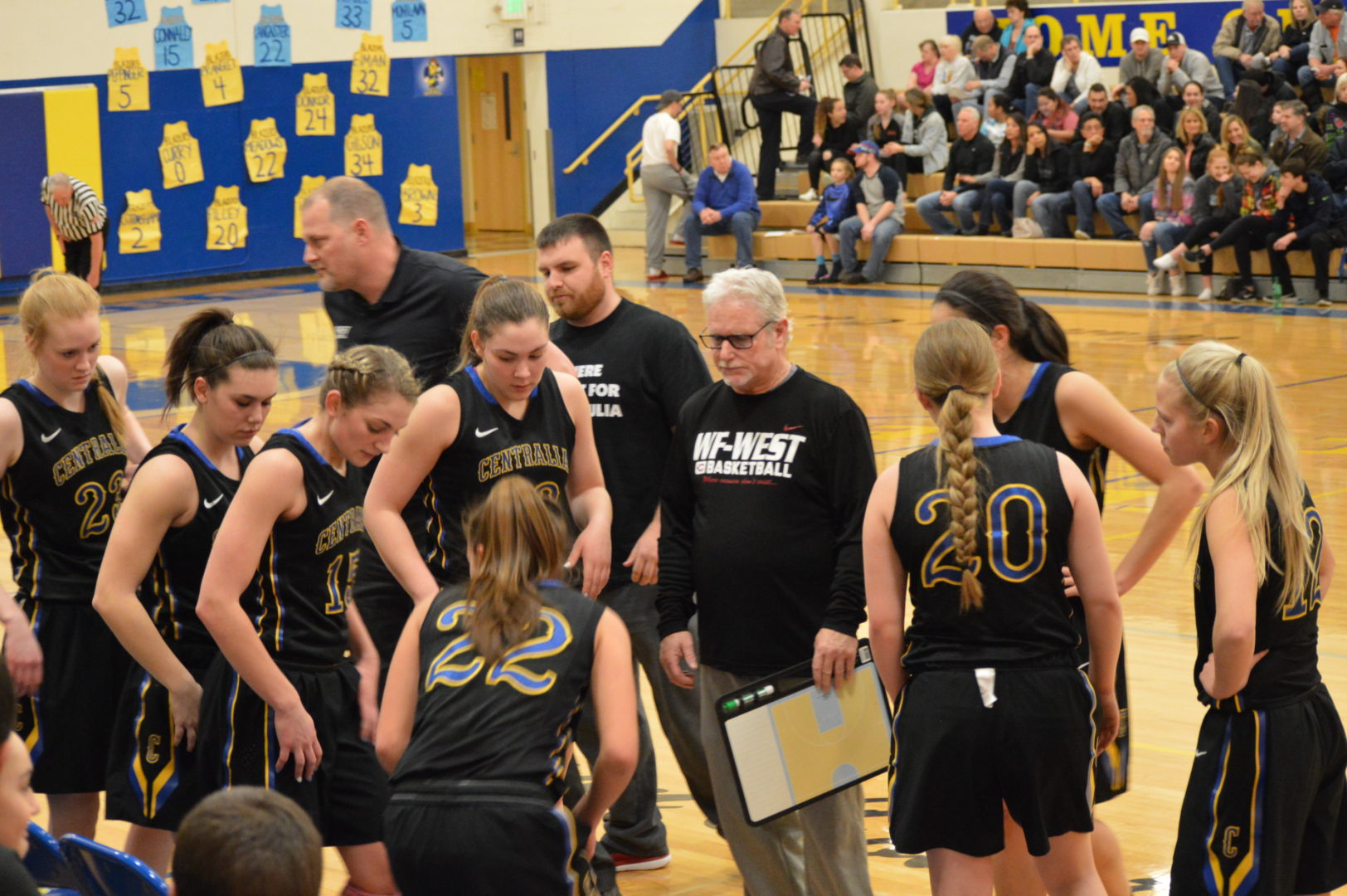 In the girls game the teams are divided into the blue and white teams and wore the centralia College uniforms additionally coaches could not coach any of their own players. So the white team was comprised of Julia Johnson and Kiara Steen of WF West, Stephanie Fried and Paoge Moorcroft from Mossyrock, Rachel Wilkerson, Centralia, Keshara Romain, Timberline, Lindsey Nurmi, Black Hills, Kayla Gairns, Shelton and Madeline Jacobson of Ilwaco and coached by Napavine’s Jeremy Landram.