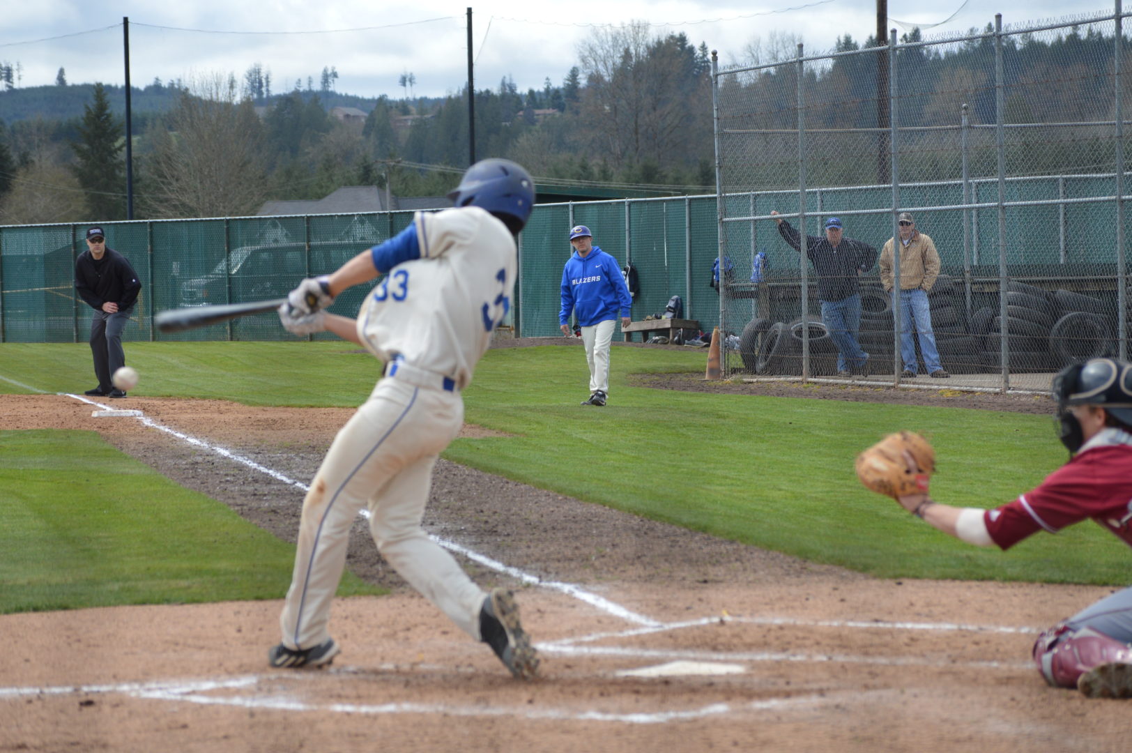 (Centralia, WA) The Centralia Blazers got off to a solid start against the Raiders of Pierce College but the lack of a timely hit and untimely miscues by the defense plus too many walks by pitching were simply too much for the Blazers. Riley Olson got the start and went 5 innings giving up just 1 run and after 5 it was 1-0 Pierce.
