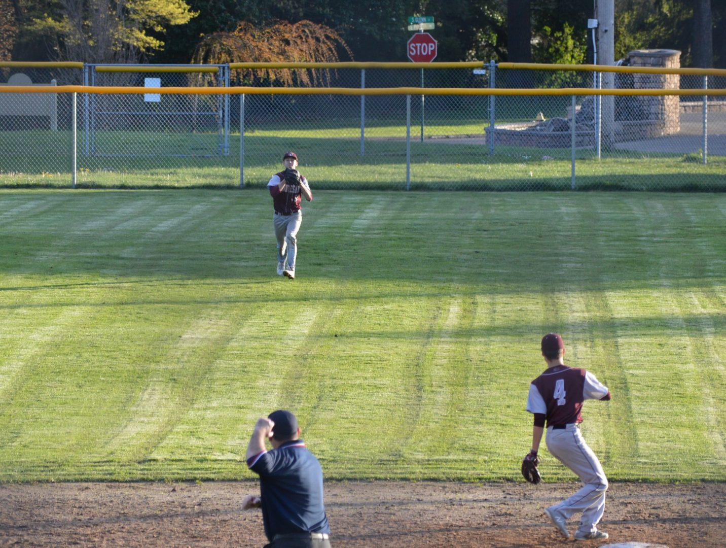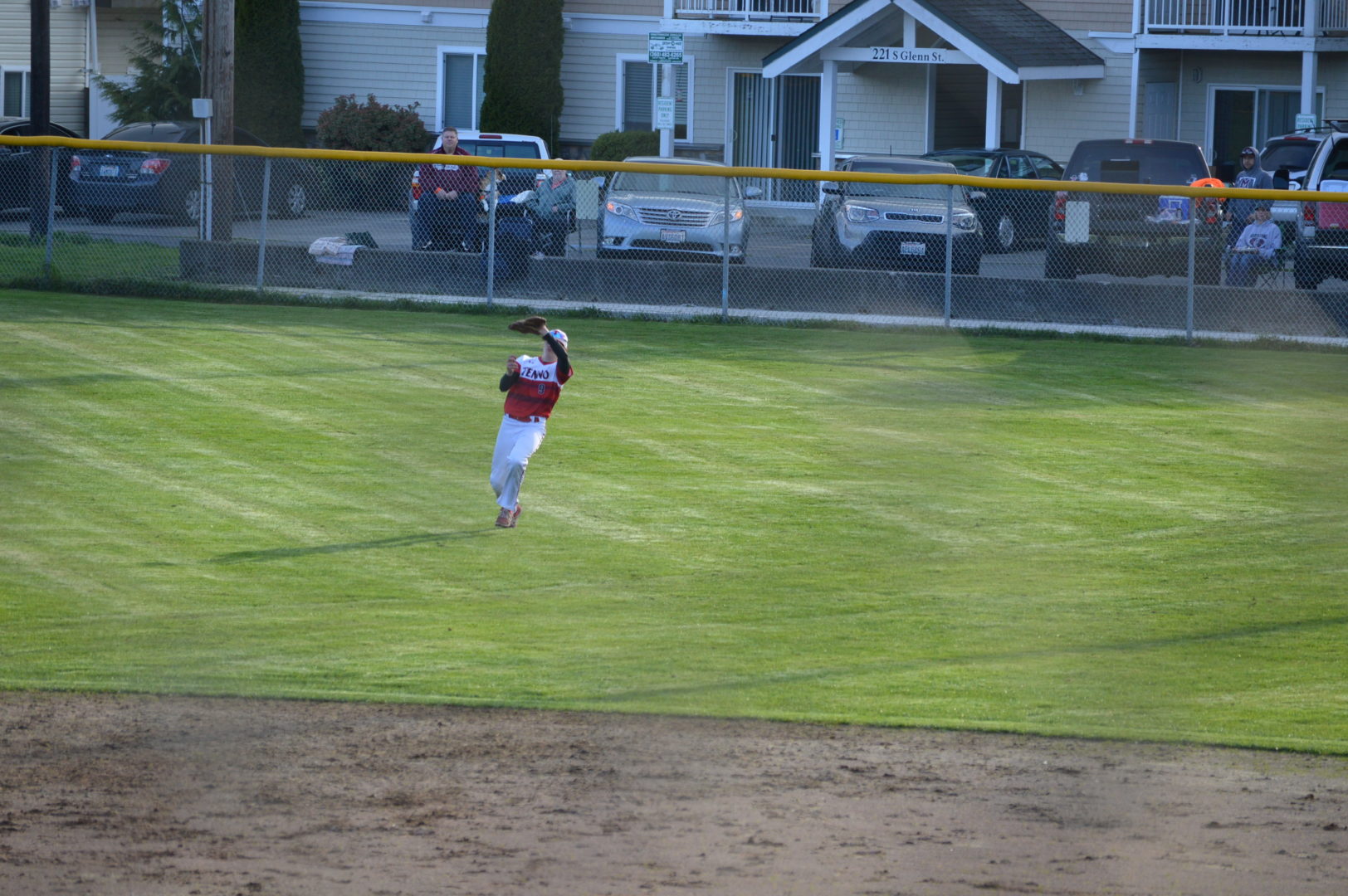 A couple of additional points of interest, Klinger who made the next to last out with a catch in center-field that was his 8th put out of the day or in mathematical terms Klinger was responsbile for making nearly 20% of all the outs for the Bulldogs over both games. The weren’t all easy cans of corn as Klinger was challenged to a center fielding throwdown with Tenino’s Mike Born. Born made an unbelievable catch in center robbing Evan Bates of at least 2 RBI and a for sure double in the 3rd inning. Not to be out done Klinger made a spectacular catch in center taking away a base hit from Tenino’s Dalton Chambers. Both catches you see here were a great signature to this hard fought twin bill.