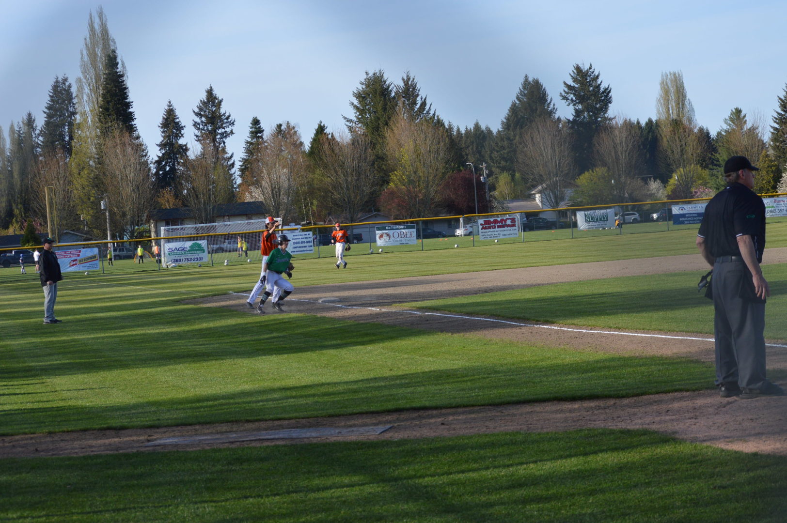 Centralia then took a 2-0 lead on a controversial play in the top of the 4th. Jackson Hull got on via a walk and then moved to 3rd and two pitches that got by the catcher and went to the deep backstop at T-Bird field and catcher Reid Little had no chance in getting Hull. With no outs Jordan almost got out of the inning giving up no run runs when he took a comebacker and checked Hull and threw out Aguire 1-3. He then hit Nolan Miller who was awarded 1st base. Miller tried to steal 2nd and was thrown out with Hull staying put at 3rd and now with 2 outs Tumwater could get out down just 1. Jeremy Wood then gounded one to 3rd baseman Shea Bowen sho scooped it and fired a shot to 1st getting Wood in time but the ball fell ouot of 1st baseman Michael Wagar’s glove. The field ump ruled he was out but after Tiger’s coaches objected and asked him to get help from the home ump the ruling was overturned and Hull who came in to score wasa safe making it 2-0.