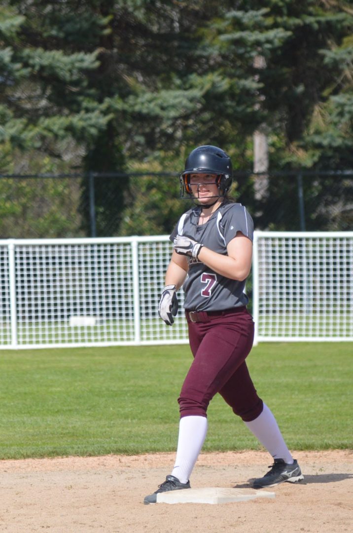 In game 2 the Bulldogs were the visitors on the scoreboard and took a 2-0 lead in the top of the 1st inning. Abi Parkin led off with base hit and then a walk to Pace moved her to 2nd. Parkin tried to steal 3rd but was caught with a great throw by Rian Peters to Jayden Olson. Sam Stanfield then singled with 2 outs followed by a bases clearing triple from Peyton Poler for the 2-0 lead.