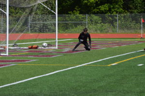 The Bruins of Columbia-White Salmon attacked first and found some chances against the Grizzly back line but the shots were not on goal and sailed high and wide. Hoquiam keeper Jonny Smith did a nice job of positioning forcing the Bruins into more selective shots. As the half moved on Hoquiam’s defenders James Courneya, Ryan Cole, Riley Jackson and Dylan Baker settled in and denied the over the top offensive attack of the Bruins. On the flip side the Hoquiam defense also was stellar with Jonny Smith in goal and defenders led by James Courneya and Ryan Cole. They would go to the break scoreless.