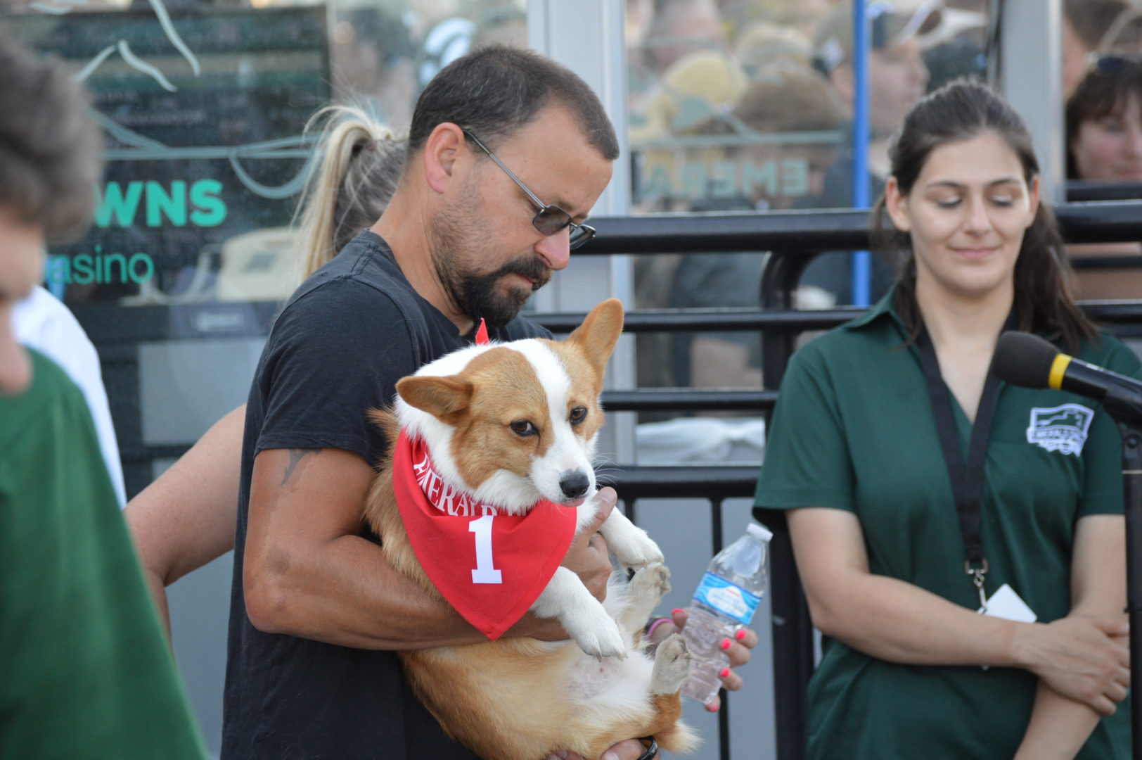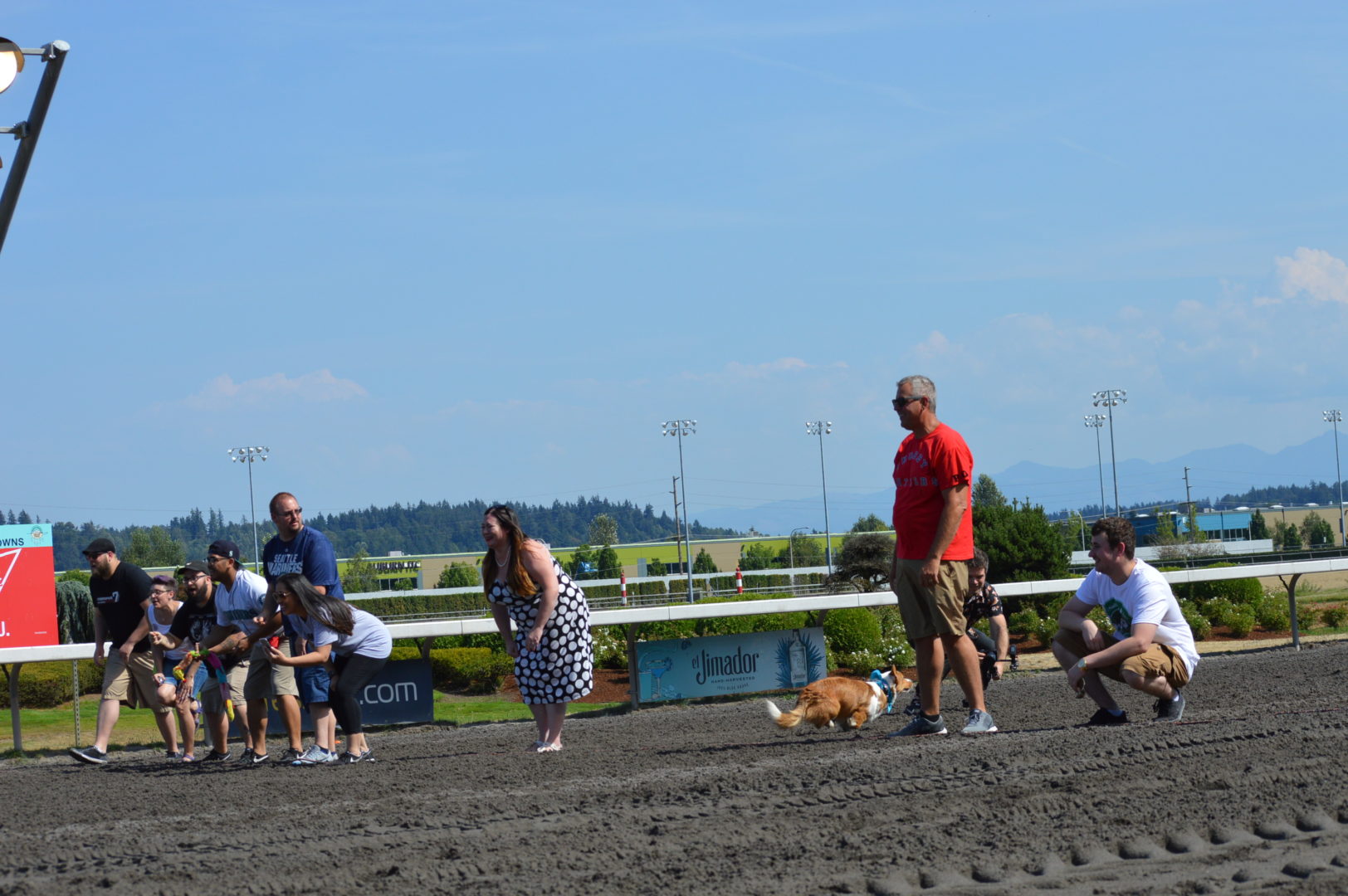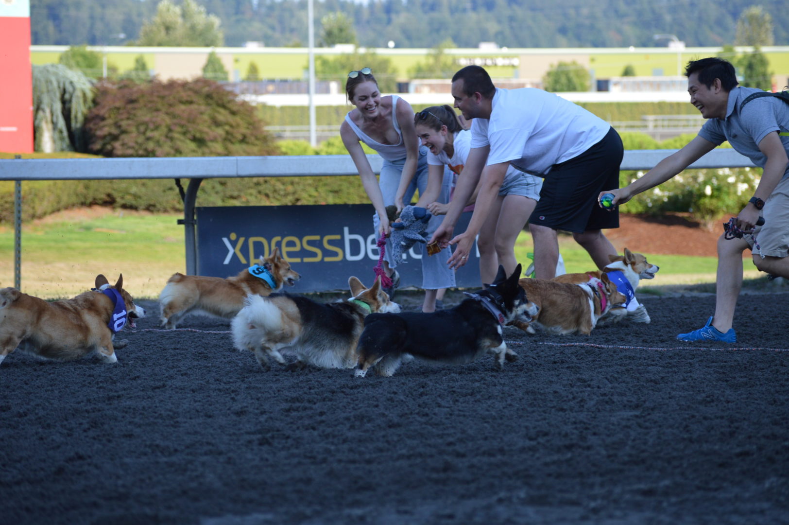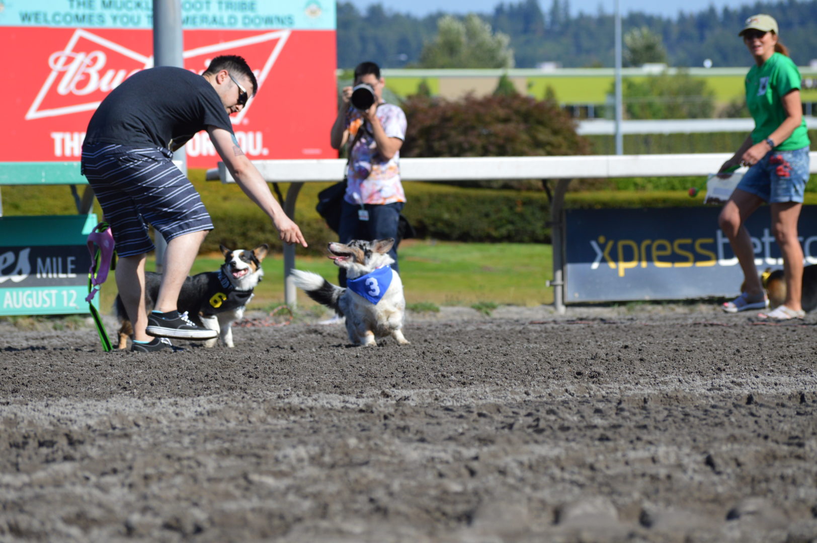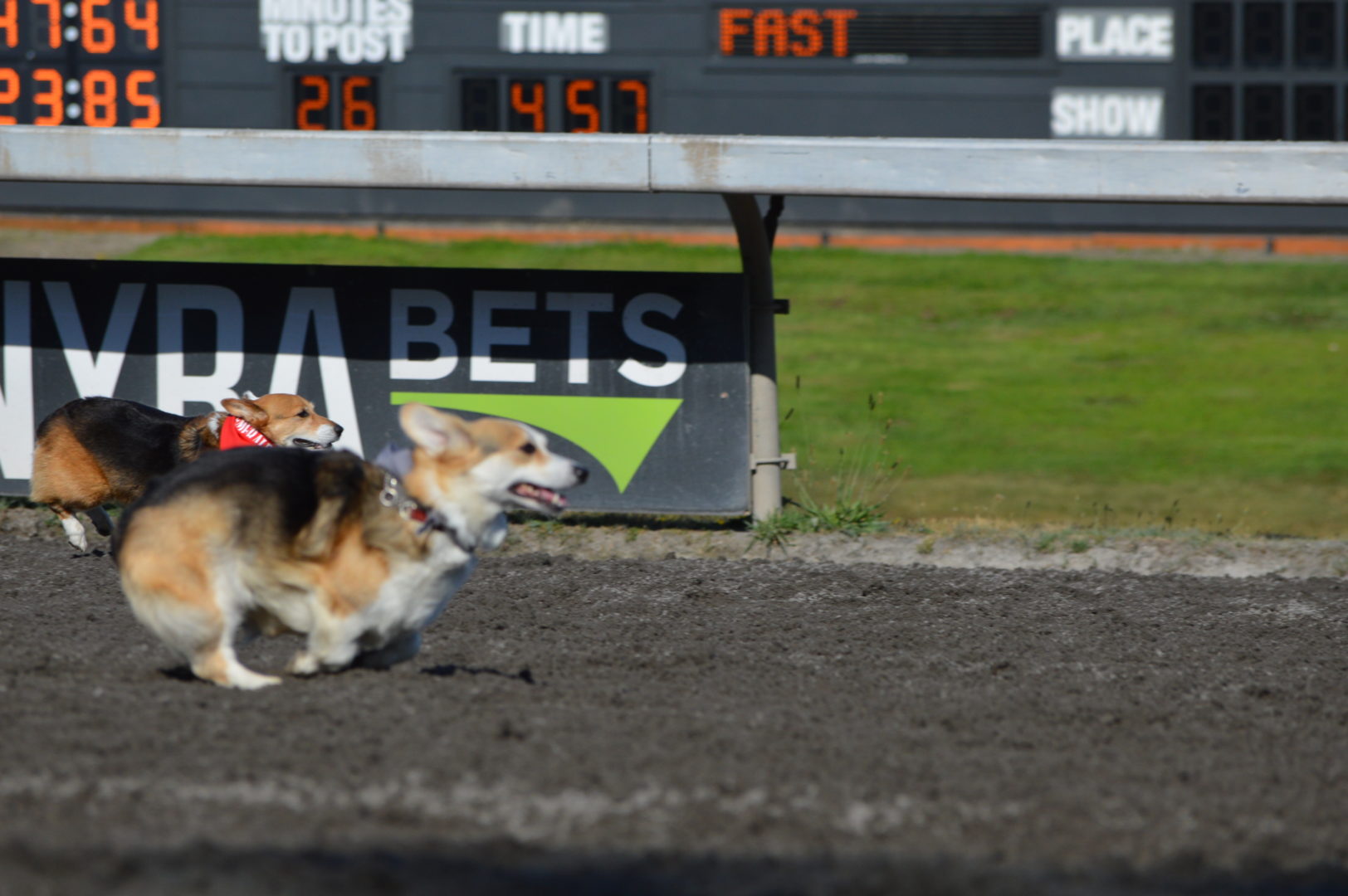 (Auburn, WA) The thundering hooves of the thoroughbreds attracts hundreds of thousands of fans each year to Emerald Downs but 1 day of the racing season it’s the pitter-patter of the Corgi’s short legs plowing through the dirt of the Auburn oval that draws huge crowds and this past Sunday was no exception. We are not sure how many people attended the races but all we knkow is that the parking lots were filled to capacity and it was difficult to move freely without accidentally bumping into someone in other words it was a massive crowd. The star attraction this day was that of the K-9 with 72 Corgi’s ready to do battle in the 1/32nd of a mile dash.